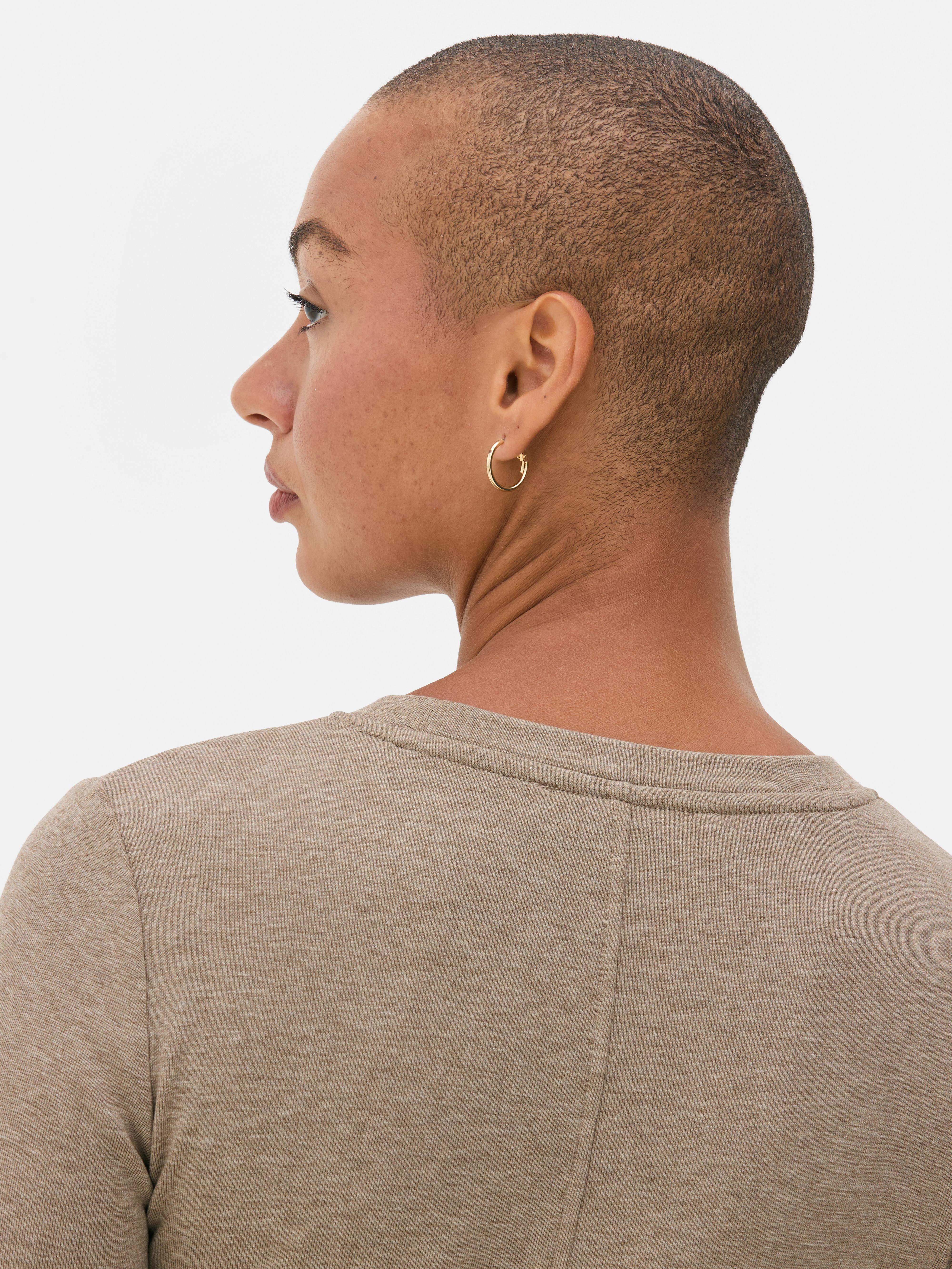 Wrap yourself in softness with this cosy long sleeve top. Made from a comfy fabric in a taupe shade, it’s perfect for layering or wearing solo. The fitted silhouette hugs gently, while the crew neckline keeps things classic. A subtle curved hem adds shape and interest to the design, making it easy to tuck in or leave out. Whether you’re relaxing at home or heading out, this top brings warmth and versatility to your everyday wardrobe.