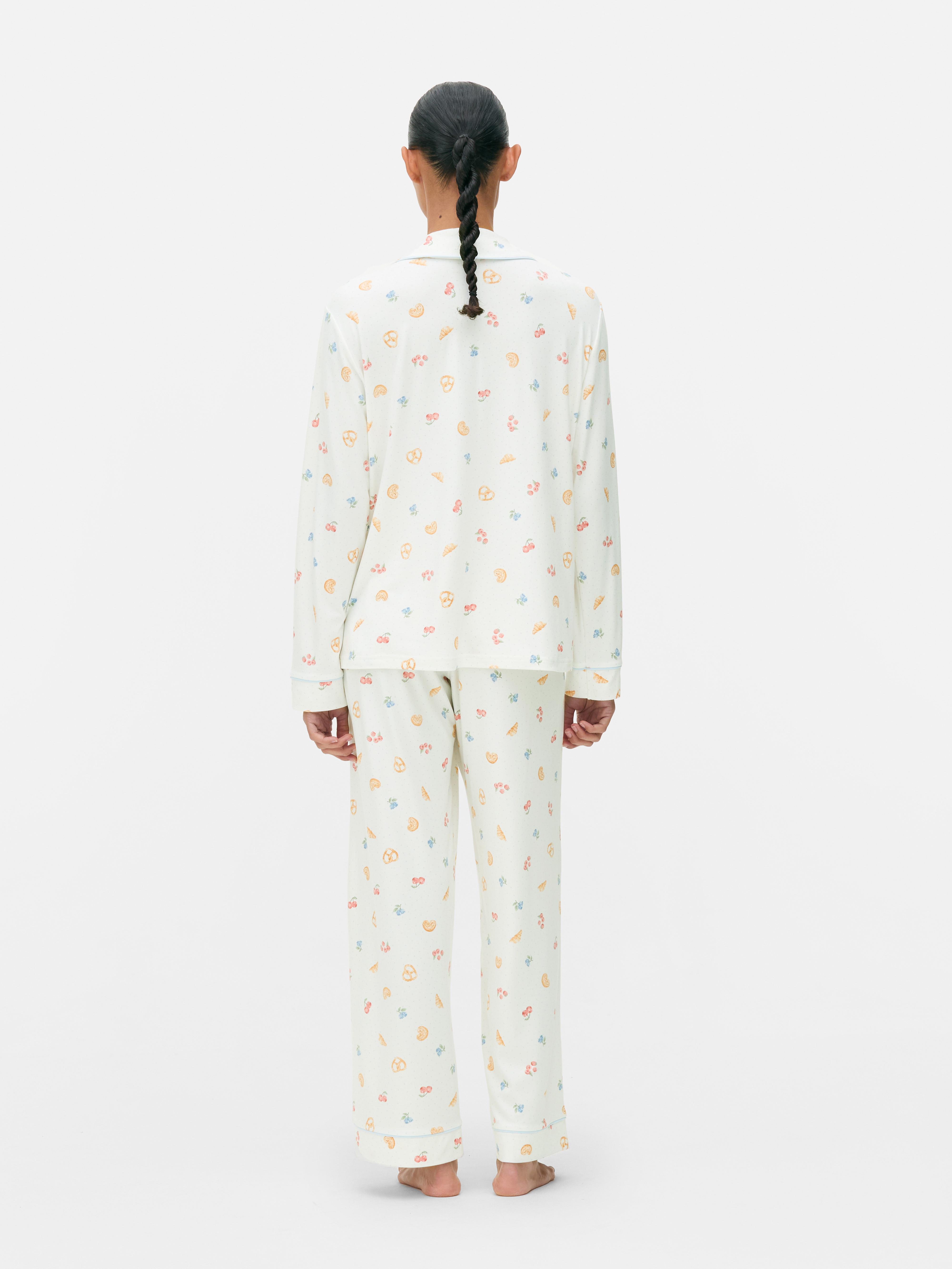 Settle in for a cosy night with this printed boyfriend pyjama set. The long sleeve button up shirt comes with a collar and a single chest pocket for a classic touch, while the matching full-length trousers keep things comfy with their relaxed fit. This set is perfect for unwinding after a long day or enjoying a slow weekend morning. Finished with an all-over print, it brings a playful twist to your nightwear drawer — whatever your style.
