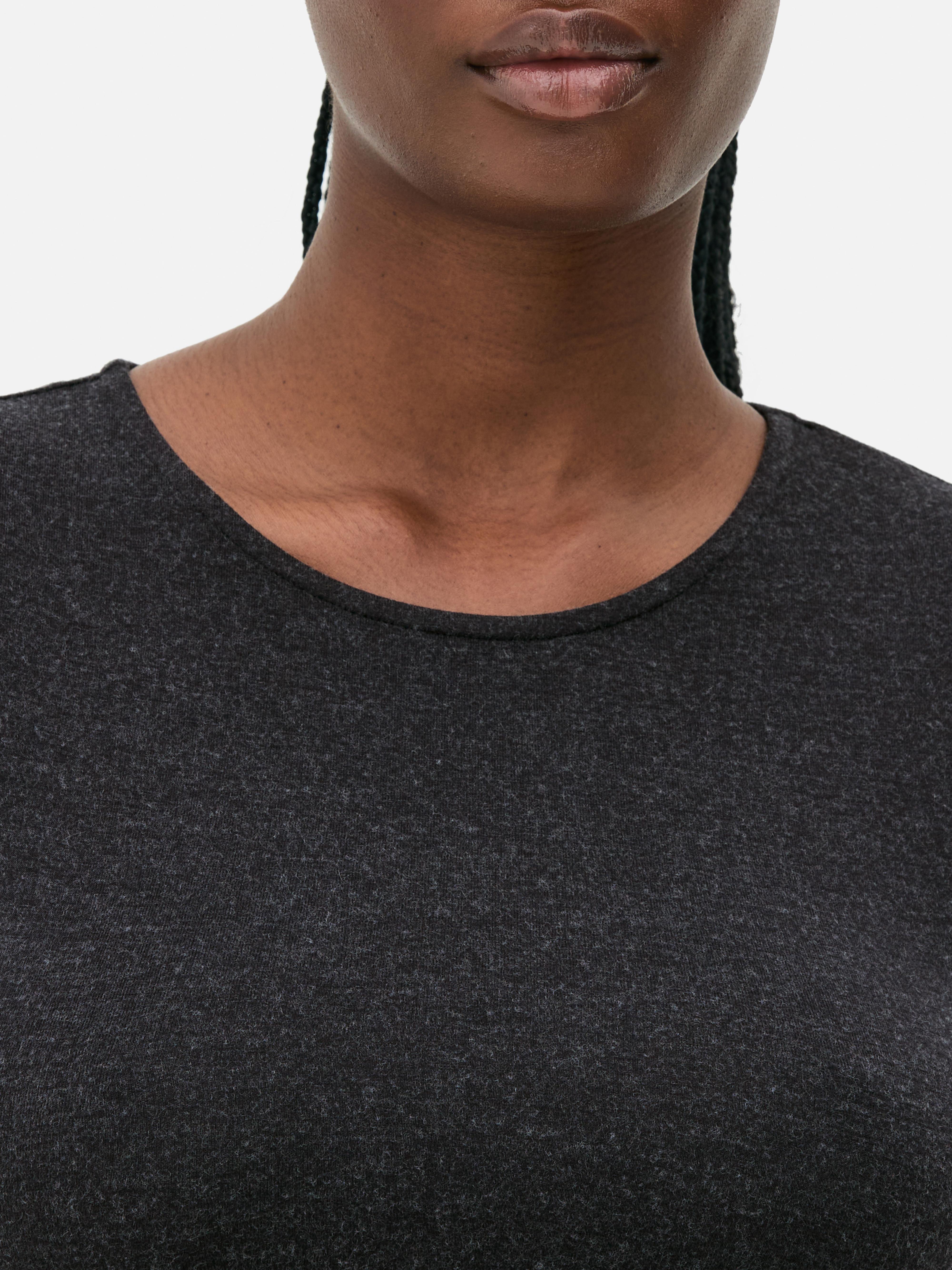 This mini dress comes with a crew neckline, long sleeves and a skater skirt design