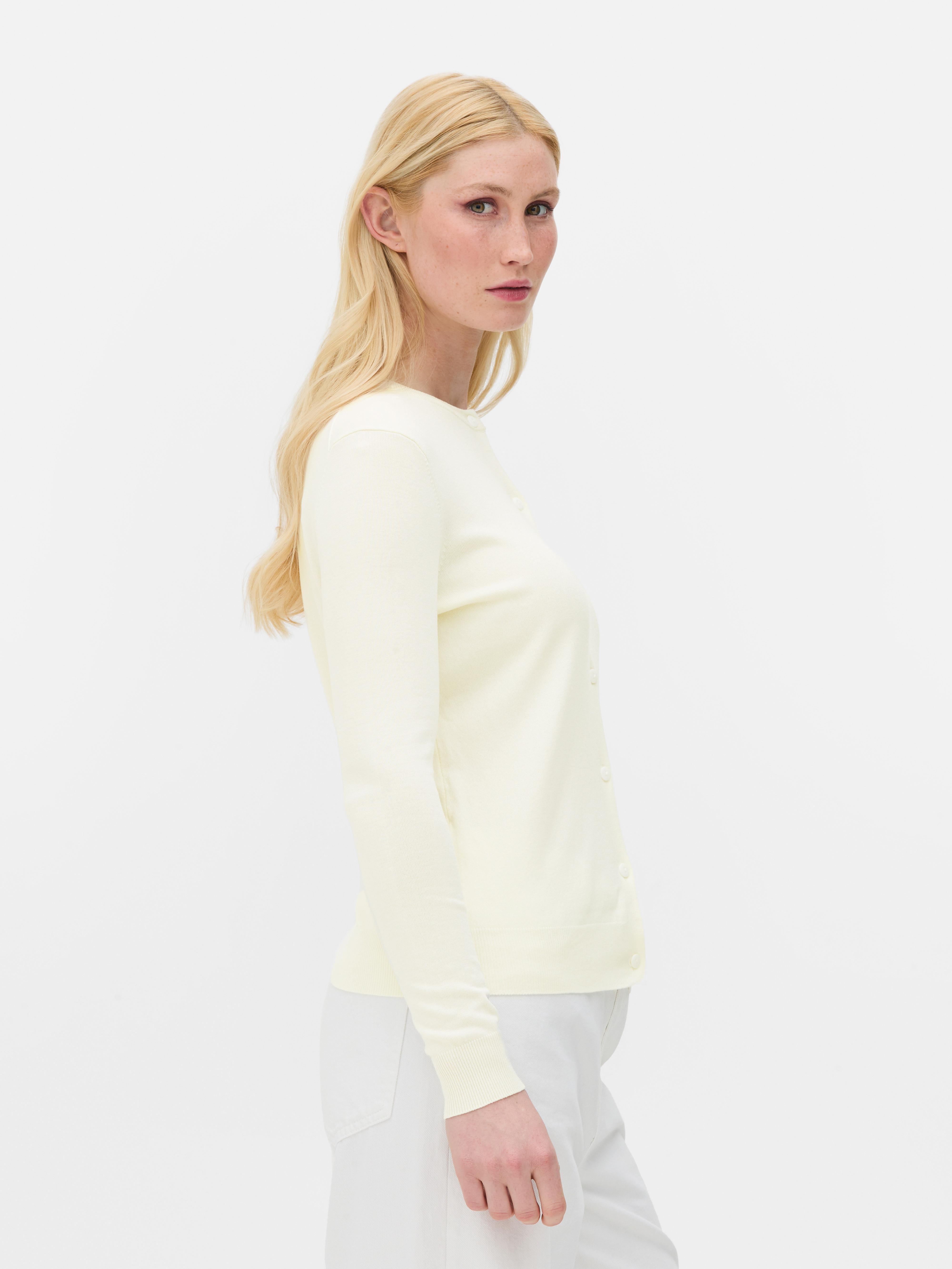 For a chic layer of style and warmth, look to the classic elegance of this finely knitted cardigan. Featuring a crew neckline and long sleeves, it's finished with a button-front fastening that can be worn open or closed. An easy-to-wear piece that will slot seamlessly into your every season edit, layer it over your fave tee and pull on a pair of jeans for an elevated off-duty vibe. For a more polished fit, swap the jeans for tailored trousers and heighten the glamour with some pretty heels. Either way, this piece is a must-have!