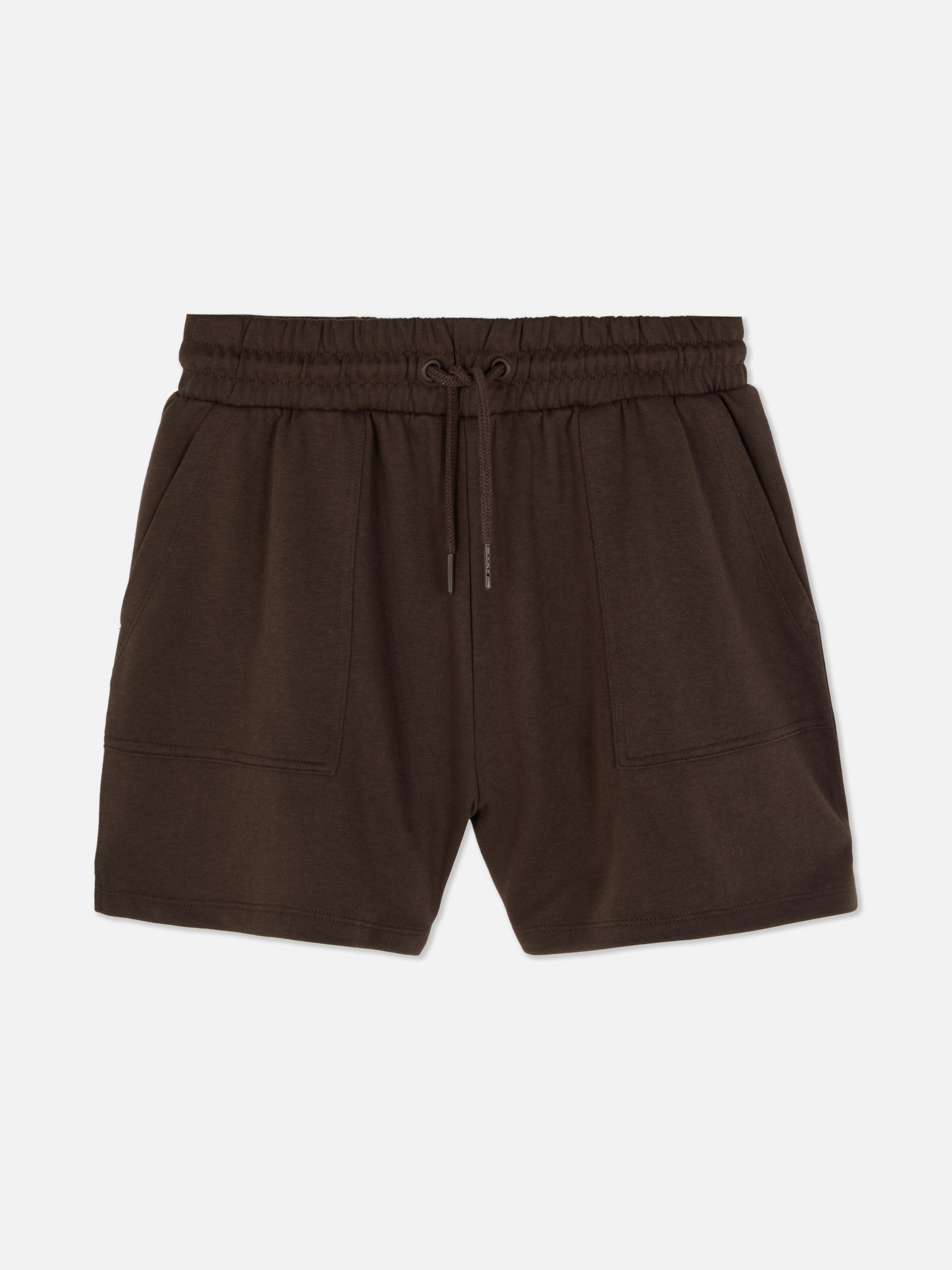 These soft jersey shorts in brown are ready for lazy mornings and active afternoons alike. Featuring a comfy drawstring waistband and practical side pockets, they're perfect for everything from weekend lounging to park walks. Style them with a cropped T-shirt and trainers for running errands, or pair with an oversized sweatshirt for those movie marathons.