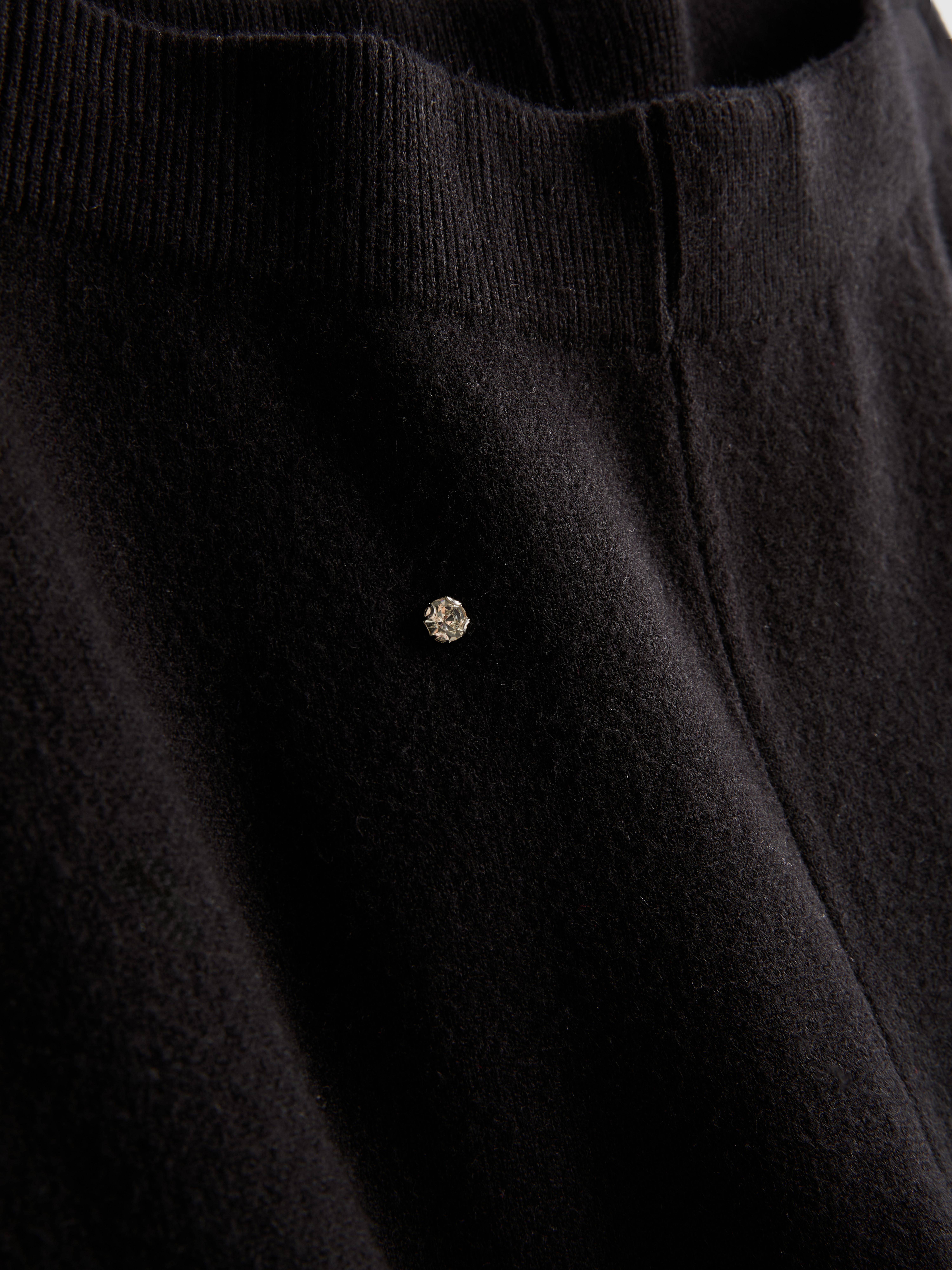 Bring a little sparkle to your wardrobe with these embroidered straight leg trousers. Made from a soft, drapey knit fabric, they have a relaxed straight leg shape that flows from the hip for an easy, comfortable wear. The black base is lifted with all-over diamanté dots and star-style motifs that add a touch of fun to any evening or smart-casual look. Finished with an elasticated waistband for pull-on ease, they’re an effortless way to dress up your everyday. Pair with the matching top for a co-ordinated look.
