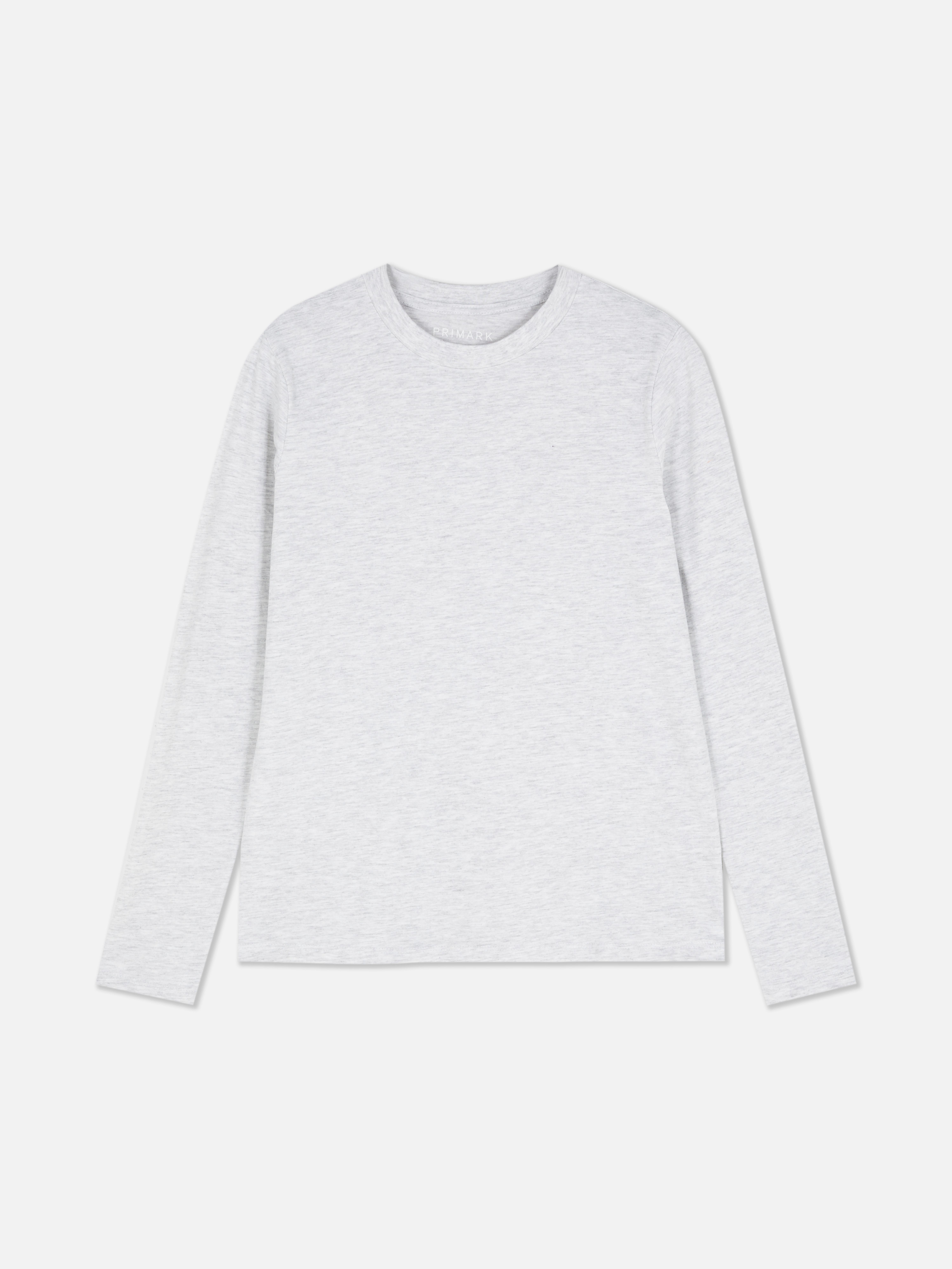 Keep it simple and comfortable with this long sleeve cotton crew neck tee. Designed in a soft jersey fabric, it’s cut in a regular fit for easy everyday wear. The classic crew neckline and grey marl shade makes it a versatile piece you can layer under jackets or style solo when the weather calls for it. With its clean, no-fuss design, this top is an easy go-to for relaxed days and effortless outfits. A timeless basic you’ll keep reaching for, whether you’re at home or out and about.