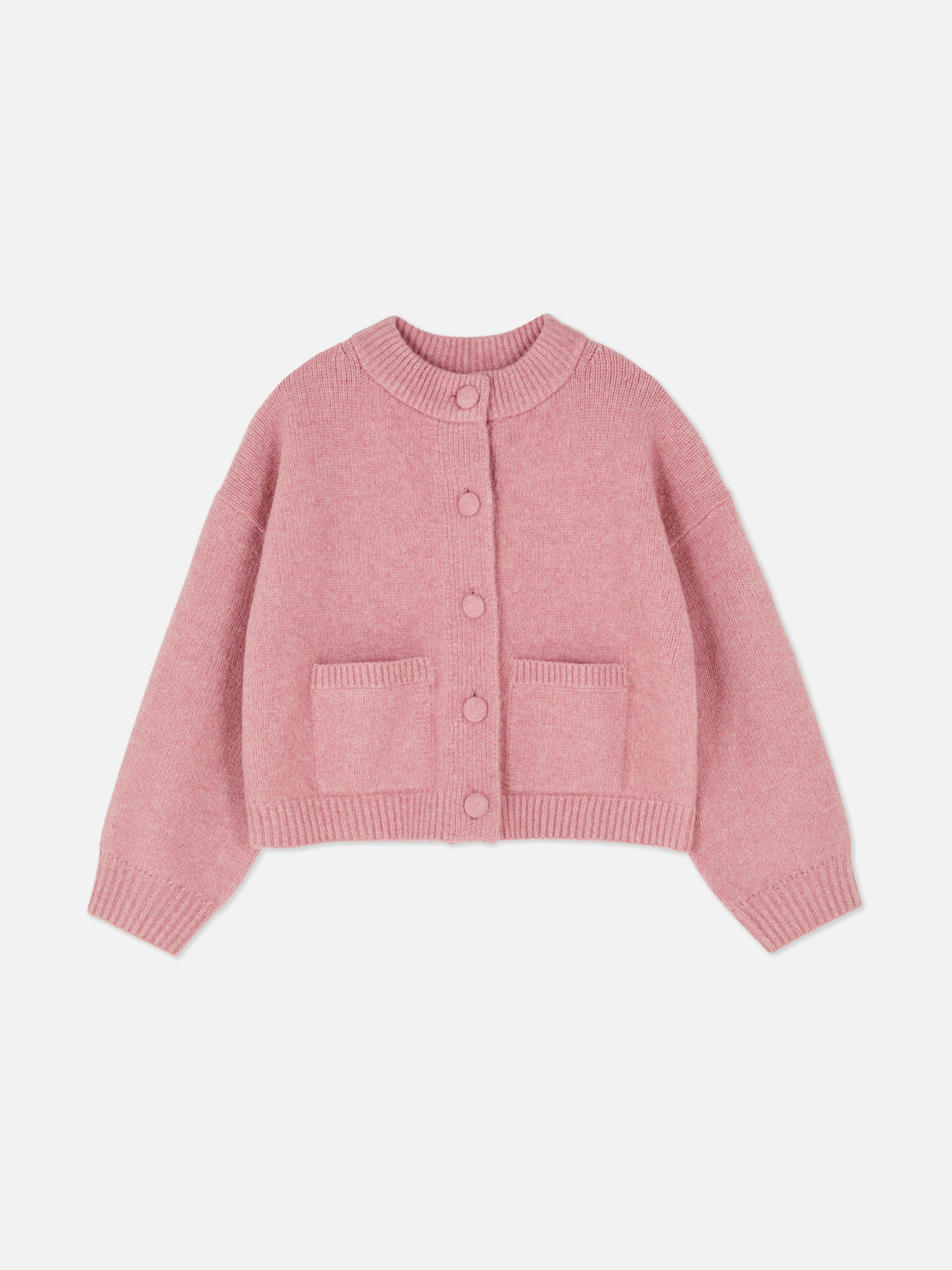 Say hello to your new throw on and go knit. This essential knitted bomber comes in a sweet pink shade with a relaxed fit that’s easy to layer. It’s designed with long sleeves, a crew neckline and a classic button down front, plus ribbed cuffs and hem for a snug finish. The soft knit texture adds cosiness, while two patch pockets bring a touch of utility (and somewhere to tuck your hands). Great with jeans, skirts or over a dress – the style choices are endless!