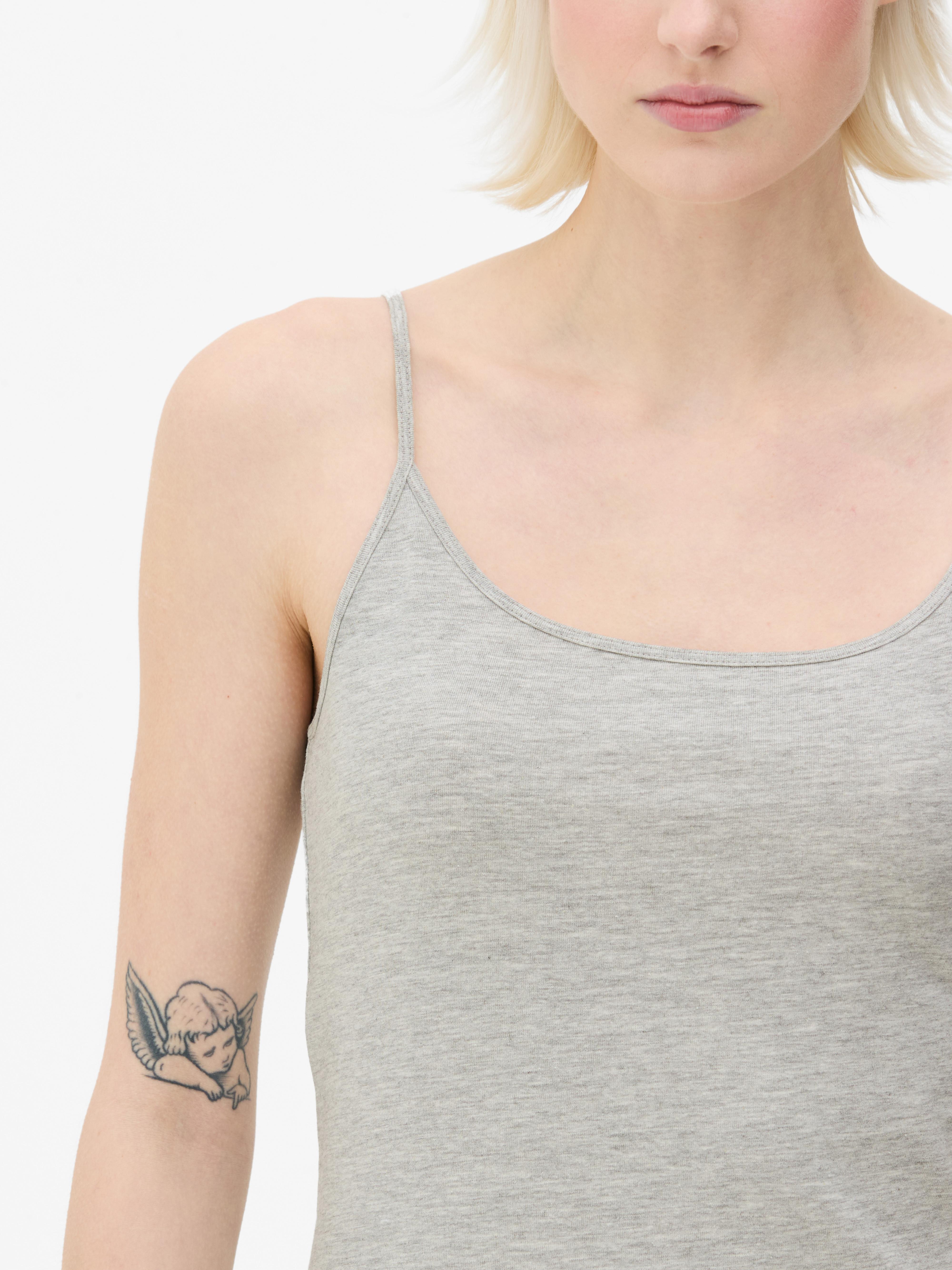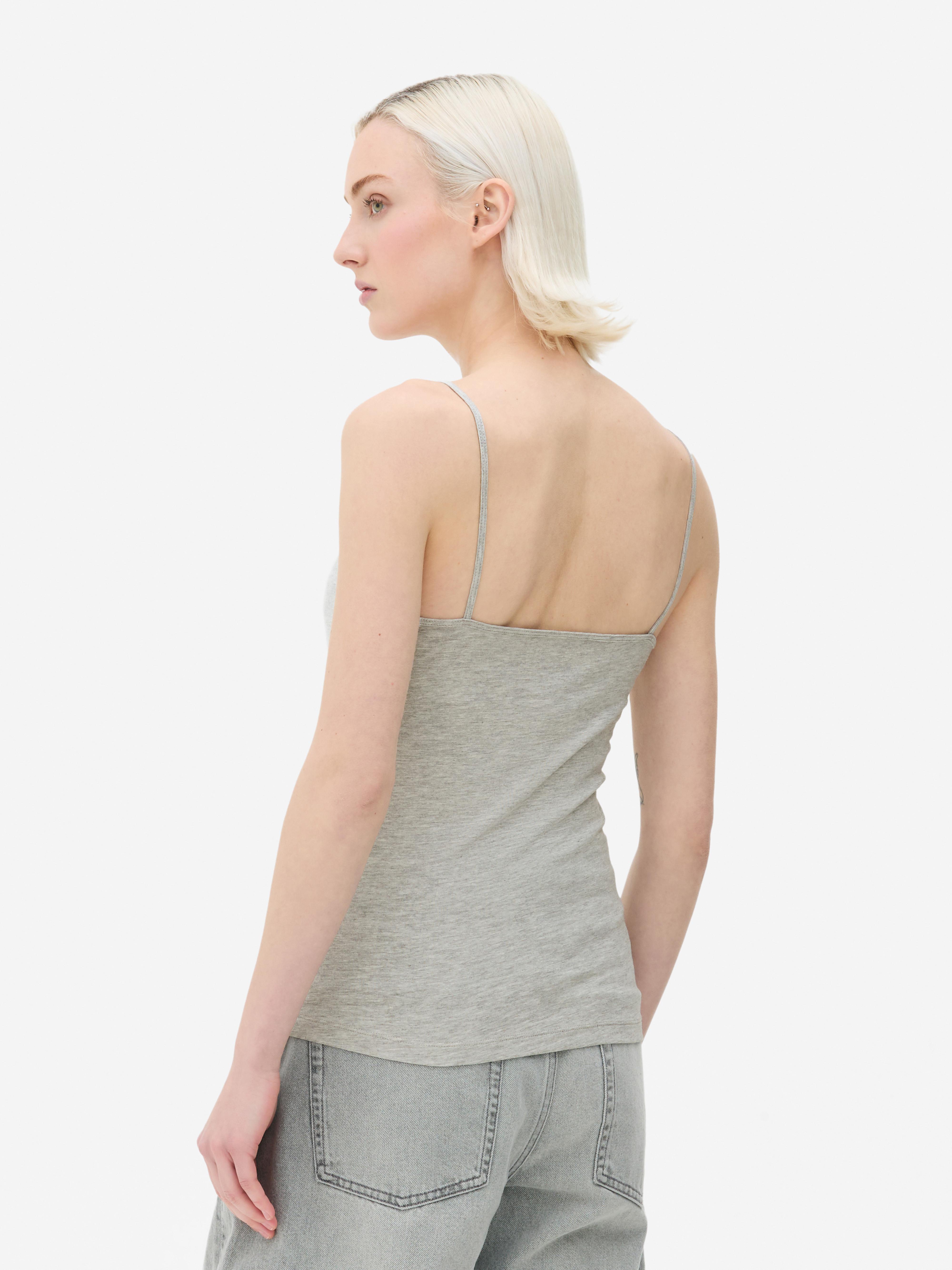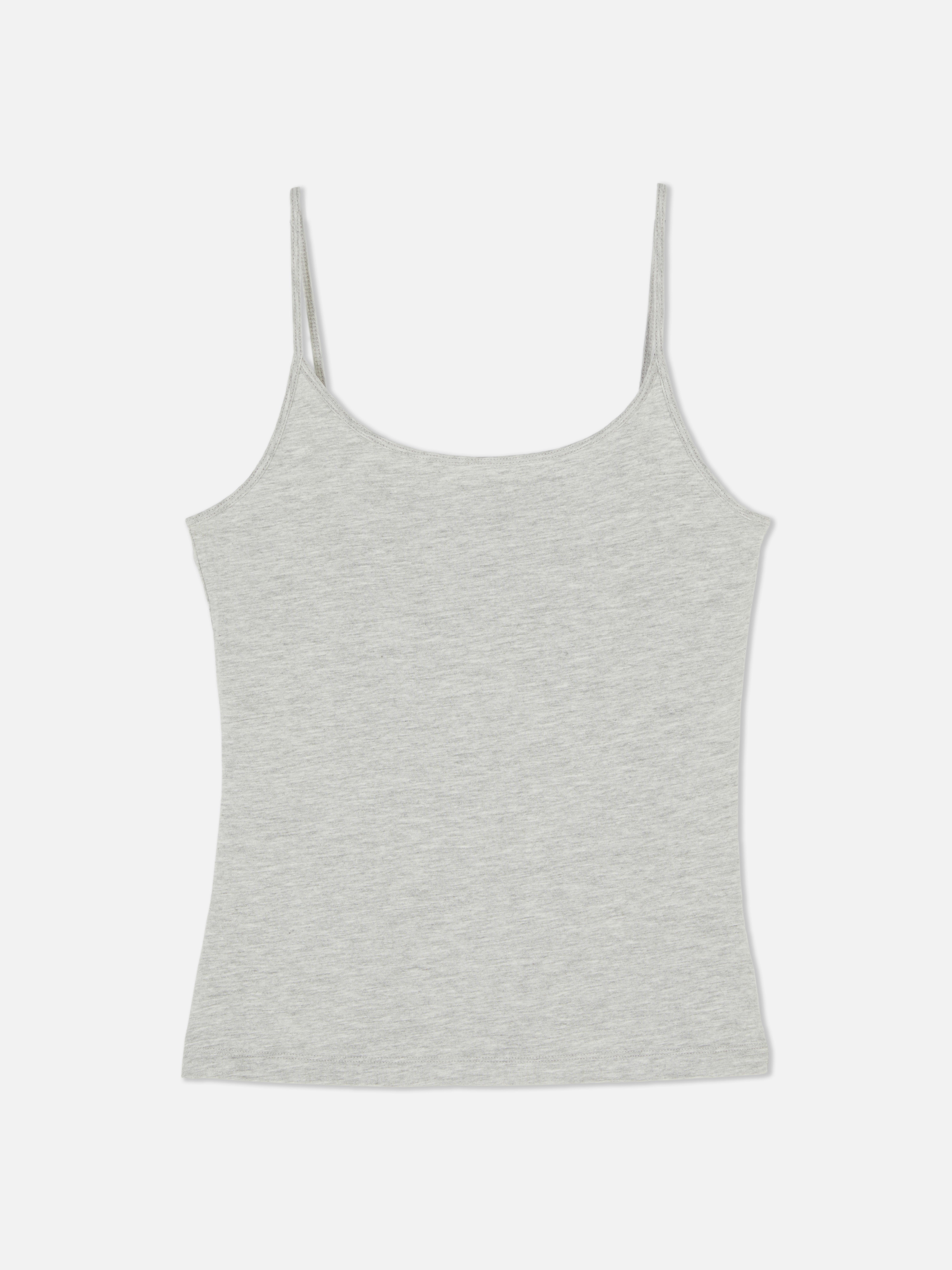 Keep things simple with this essential cami. Designed with a sleeveless cut, thin shoulder straps and a scoop neckline, it’s the kind of piece you’ll reach for on repeat. The fitted silhouette and stretch fabric offer a close, comfortable fit that works as a base layer or on its own. Finished in a solid light grey shade, it’s easy to mix and match, layer or wear solo. How will you style it?The fibre used in this product is made from Recover™ recycled cotton that comes from post-industrial waste (like fabric scraps and leftover yarns from garment production). Recover™ is a materials science company that is reimagining the clothing industry by transforming textile waste into low-impact, high-quality recycled cotton fibre and cotton fibre blends.