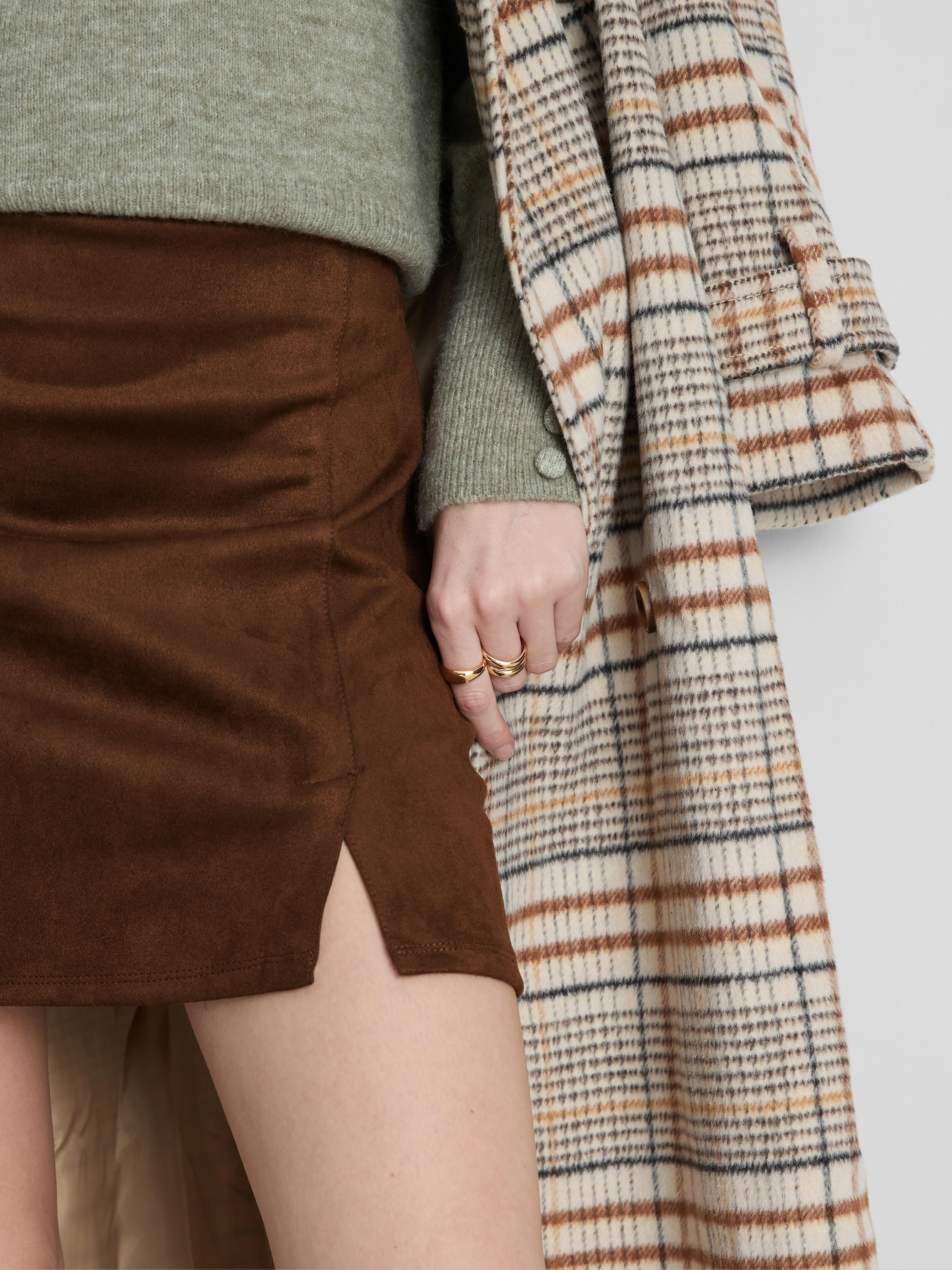 In an A-line cut, this mini skirt comes in a faux suede finish