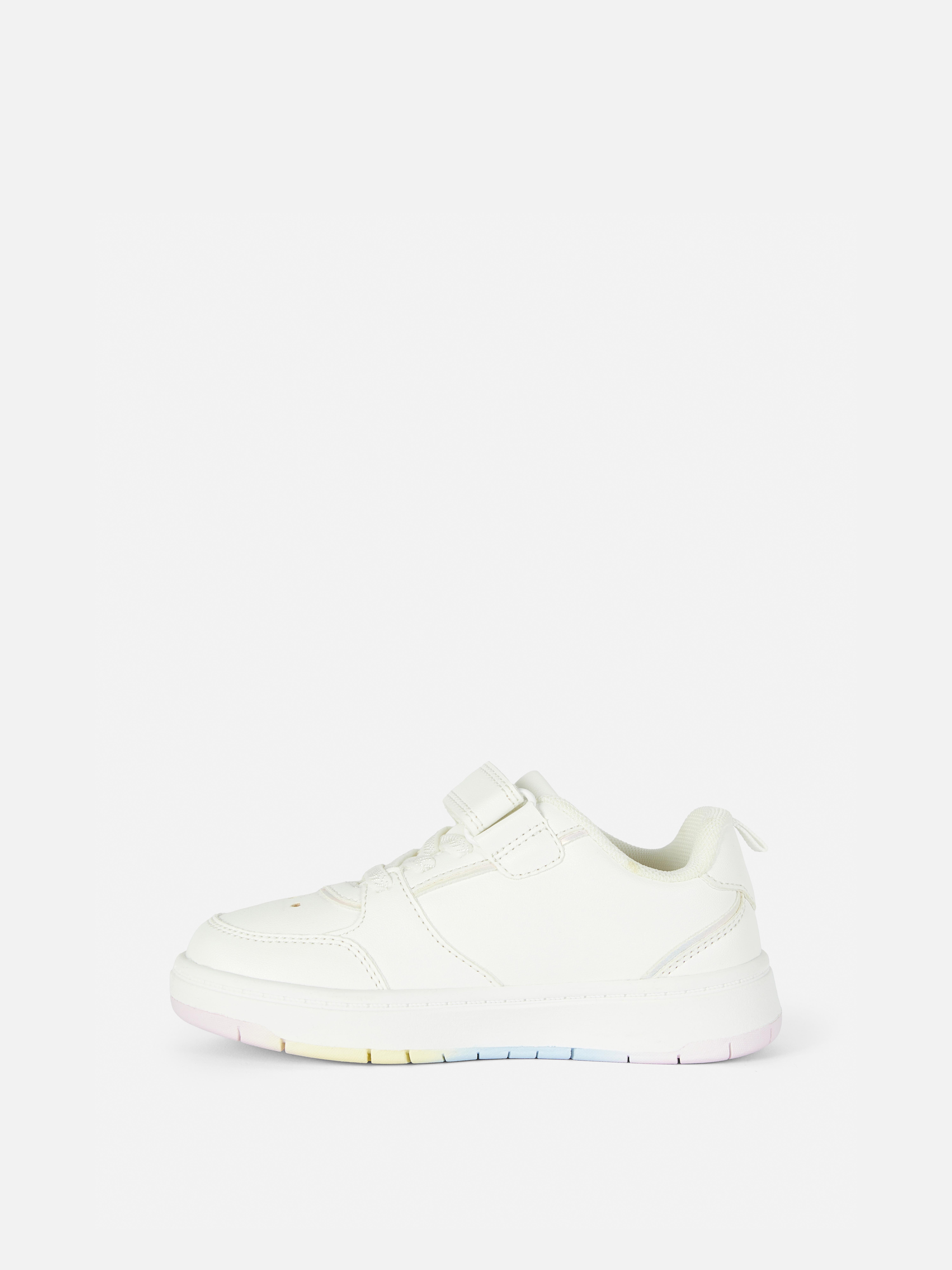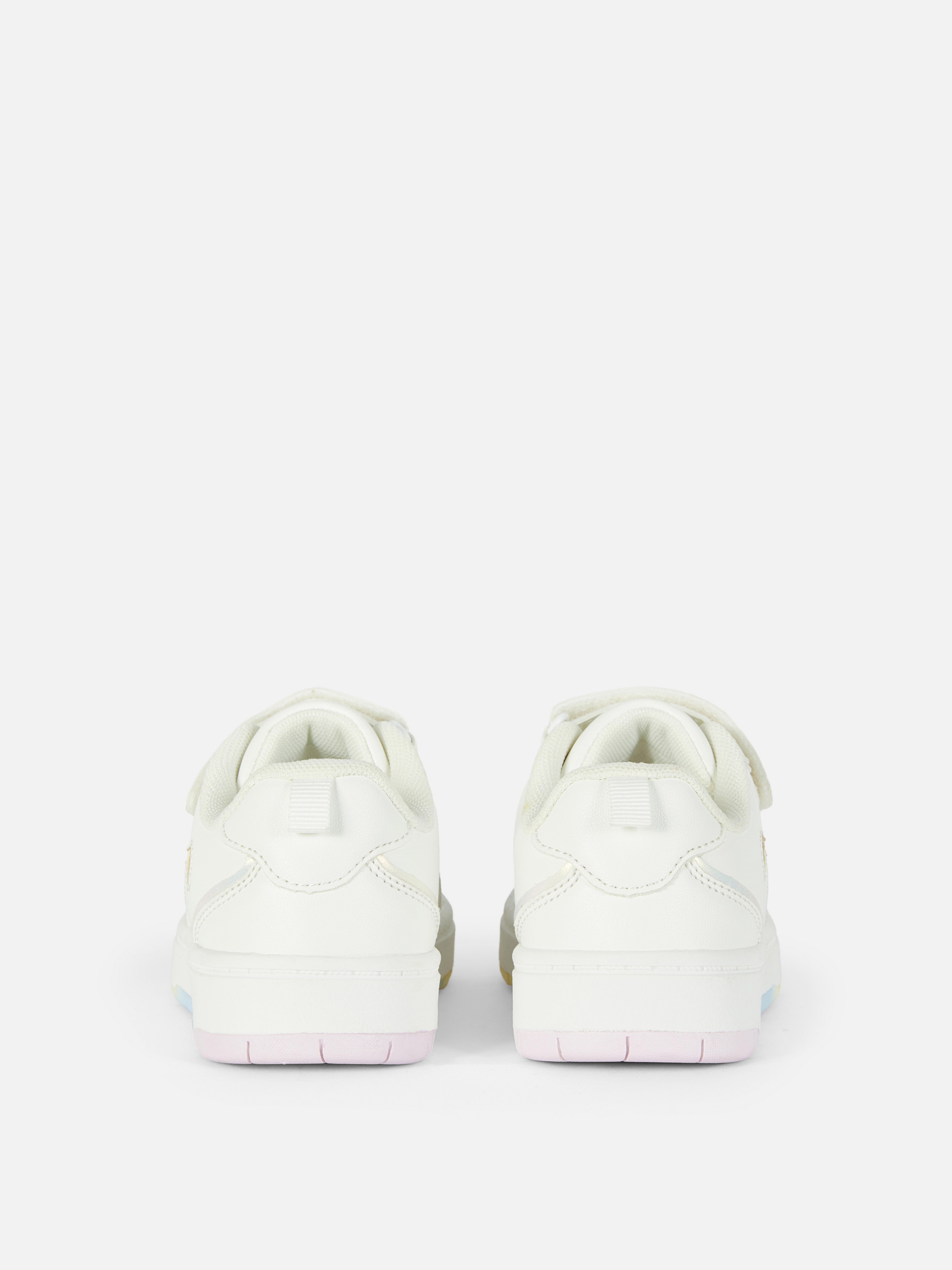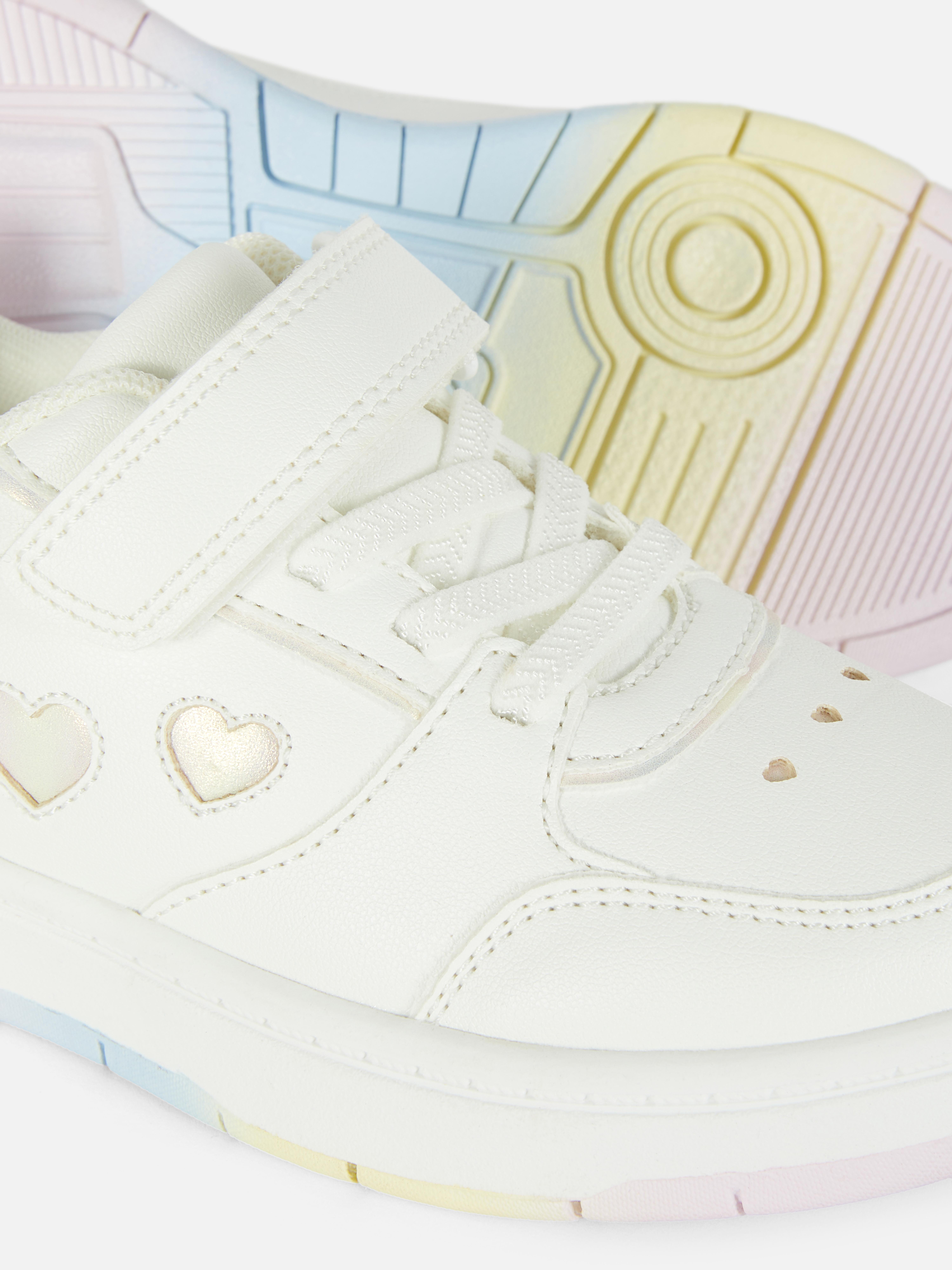 A pair of lace front low-top sneakers with self-fastening straps and heart details