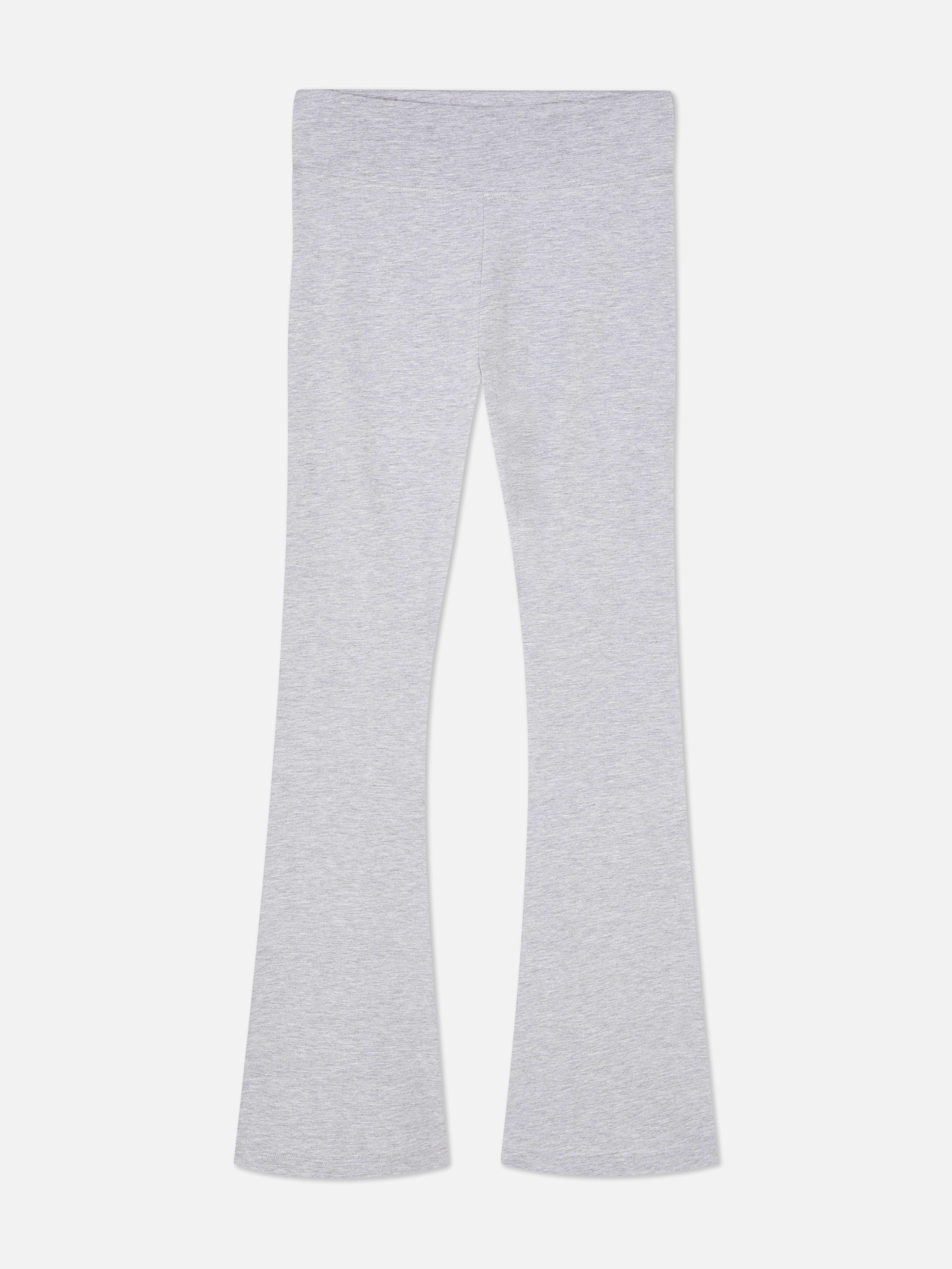 These flared high-waisted leggings are the perfect blend of retro flair and modern comfort. Coming in a grey marl colourway, they're easy to pair with anything in your wardrobe, from blouses to oversized tees. The high-waisted design offers chic coverage, while the flared legs add a fun, throwback vibe that’s oh-so-flattering. Whether you’re lounging at home or heading out for brunch, these leggings will be your go-to for effortless style with a groovy twist!