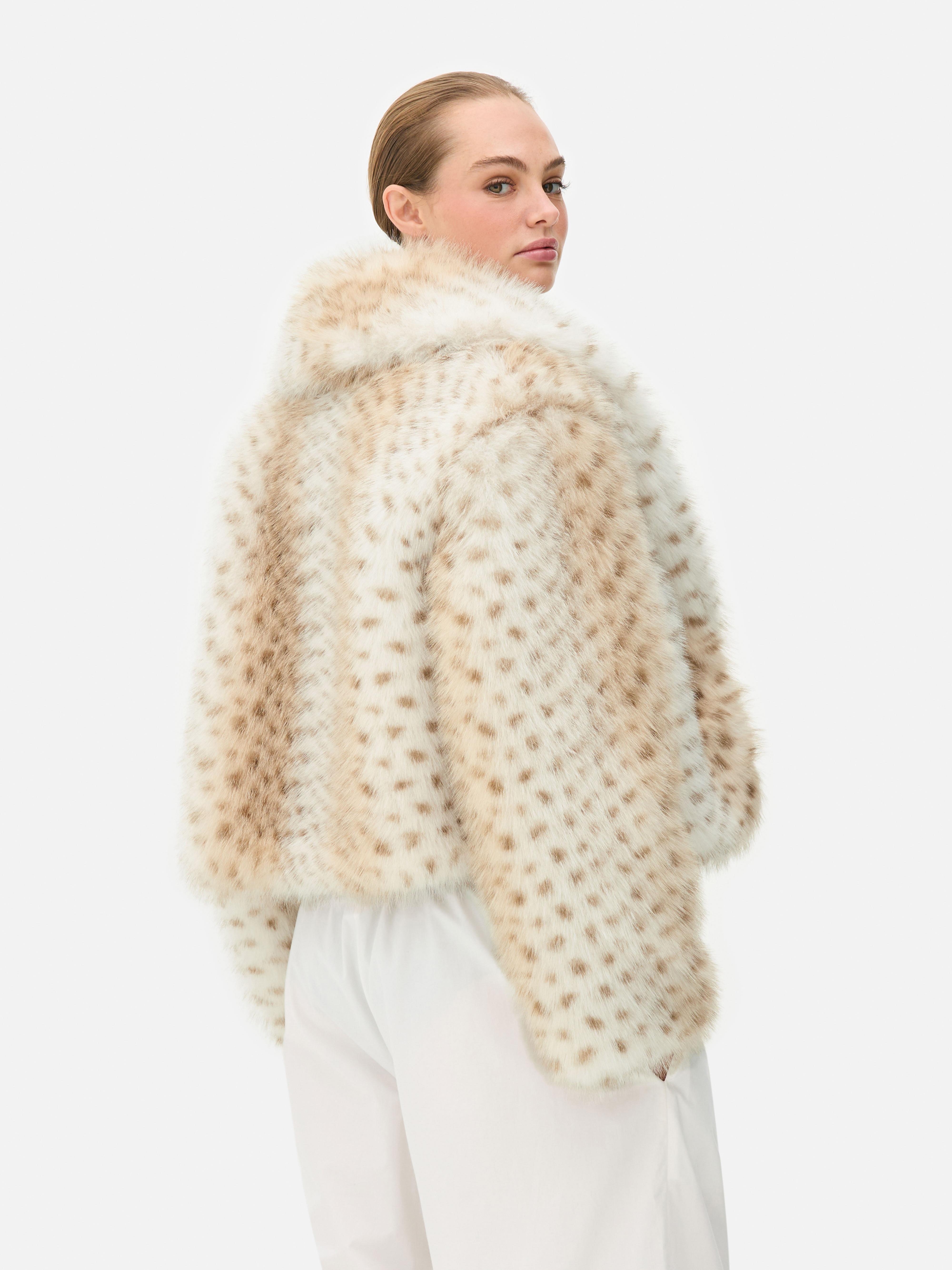 This faux fur jacket has an allover animal inspired print in a regular fit