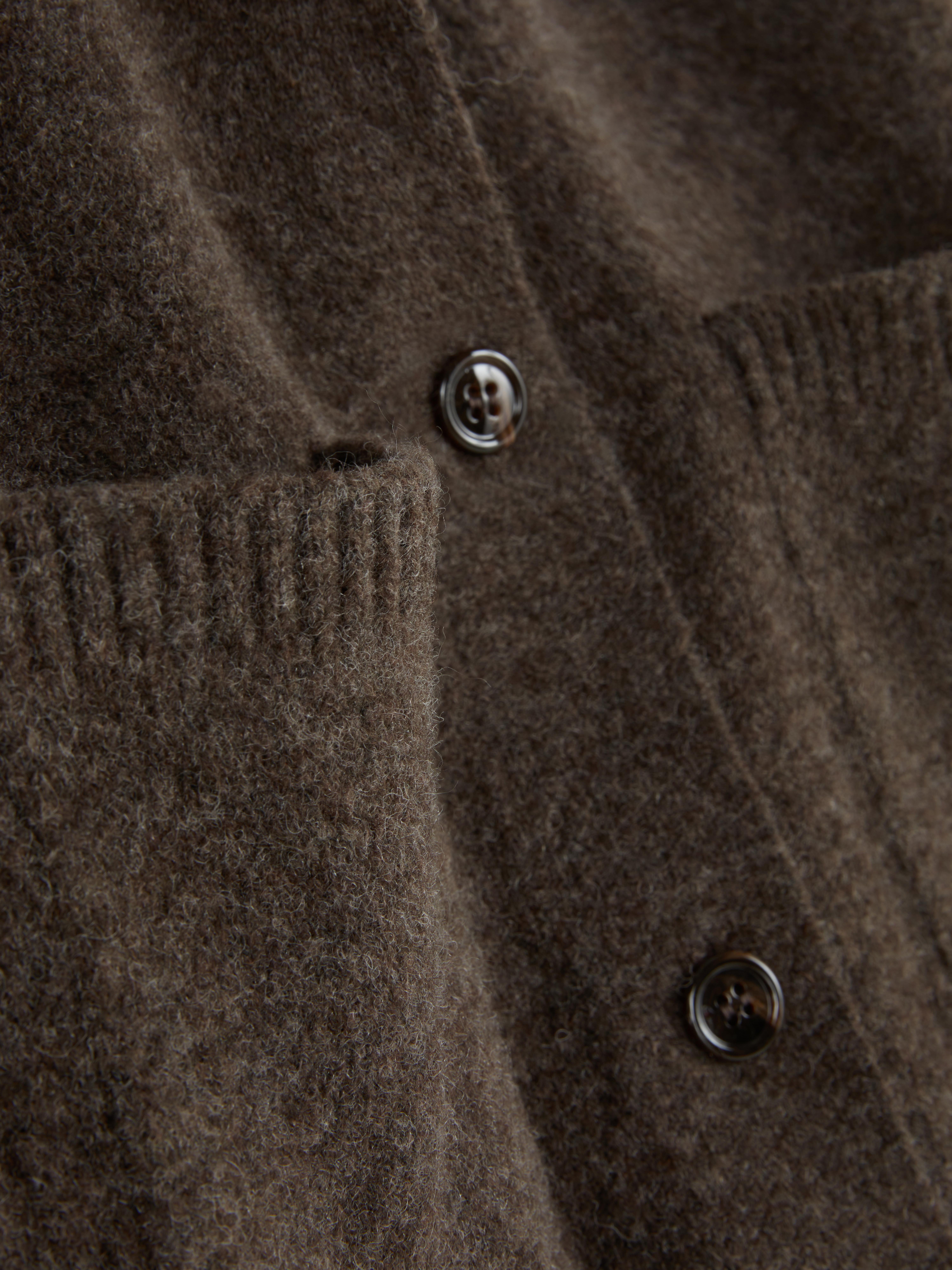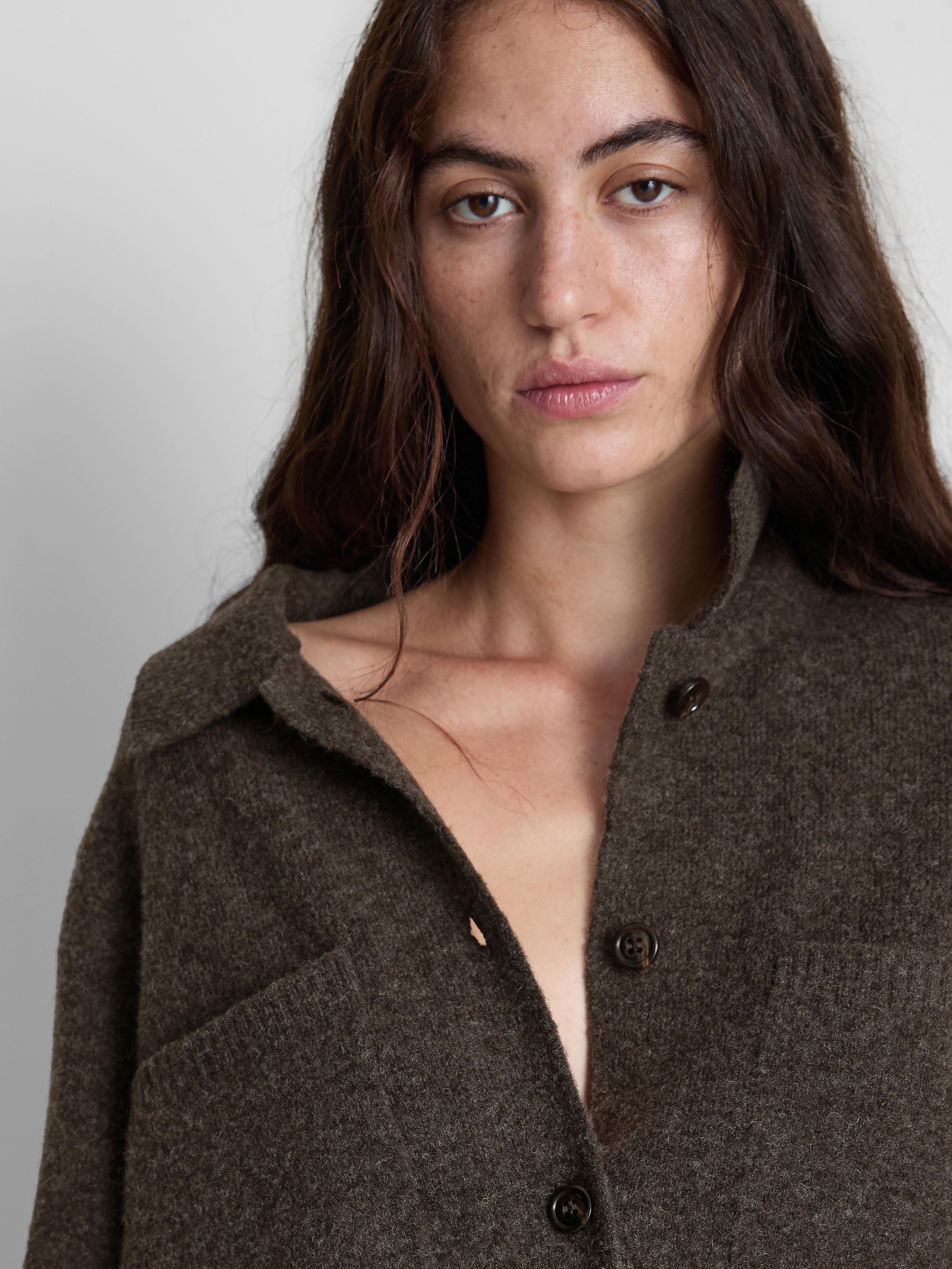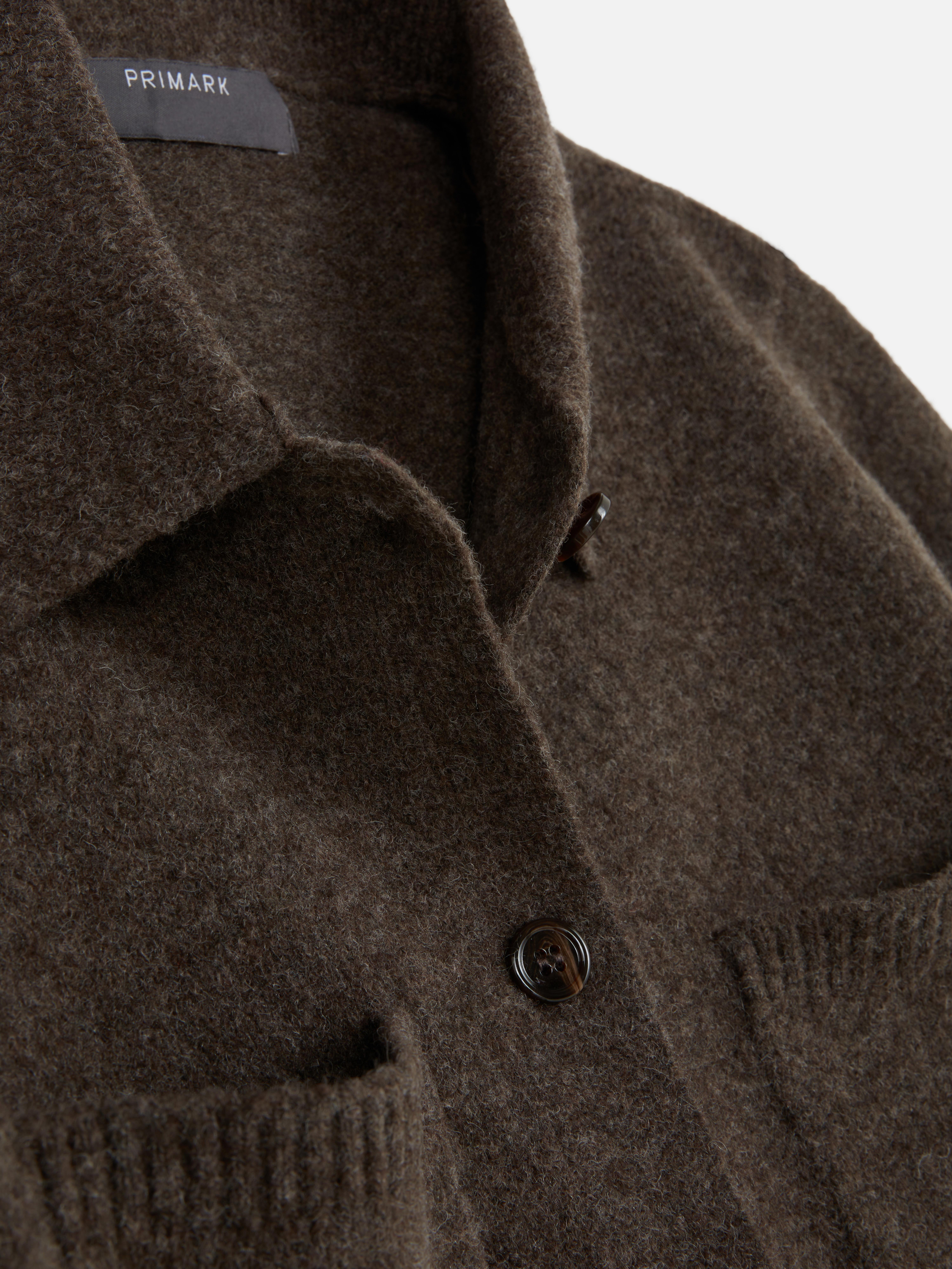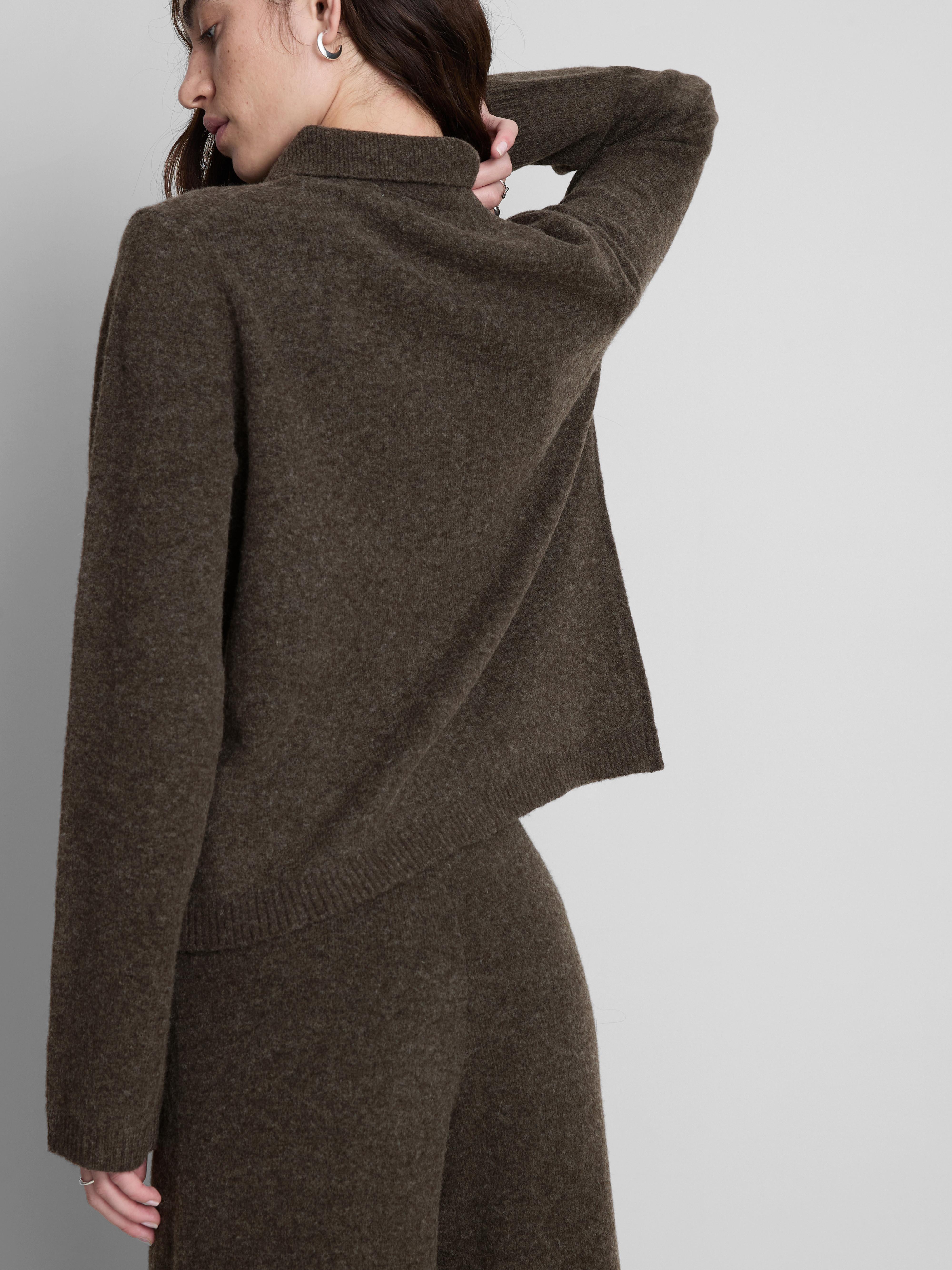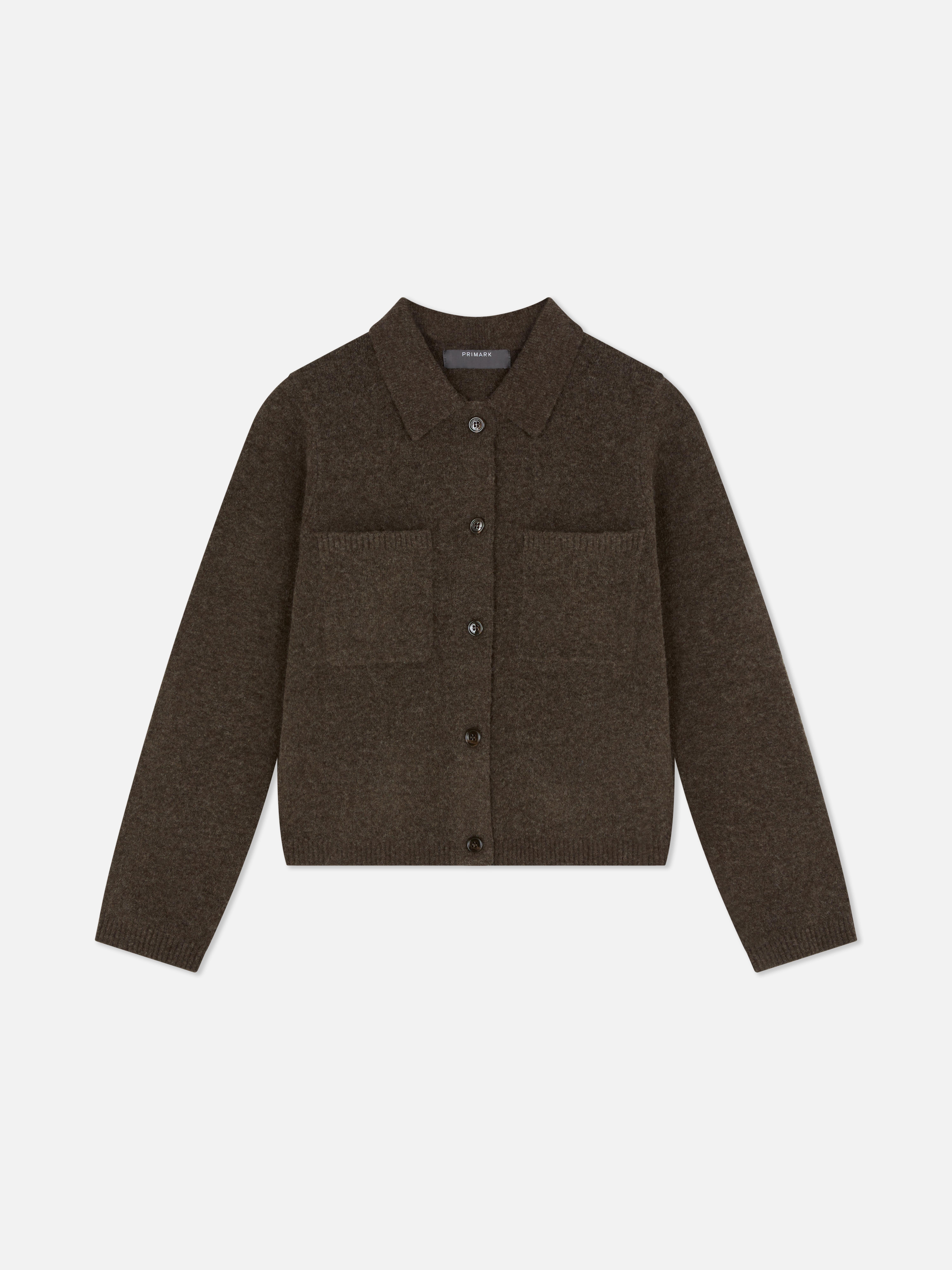 This knitted jacket has a collar, long sleeves, a regular fit and two patch pockets. Matching wide leg sweatpants available separately!