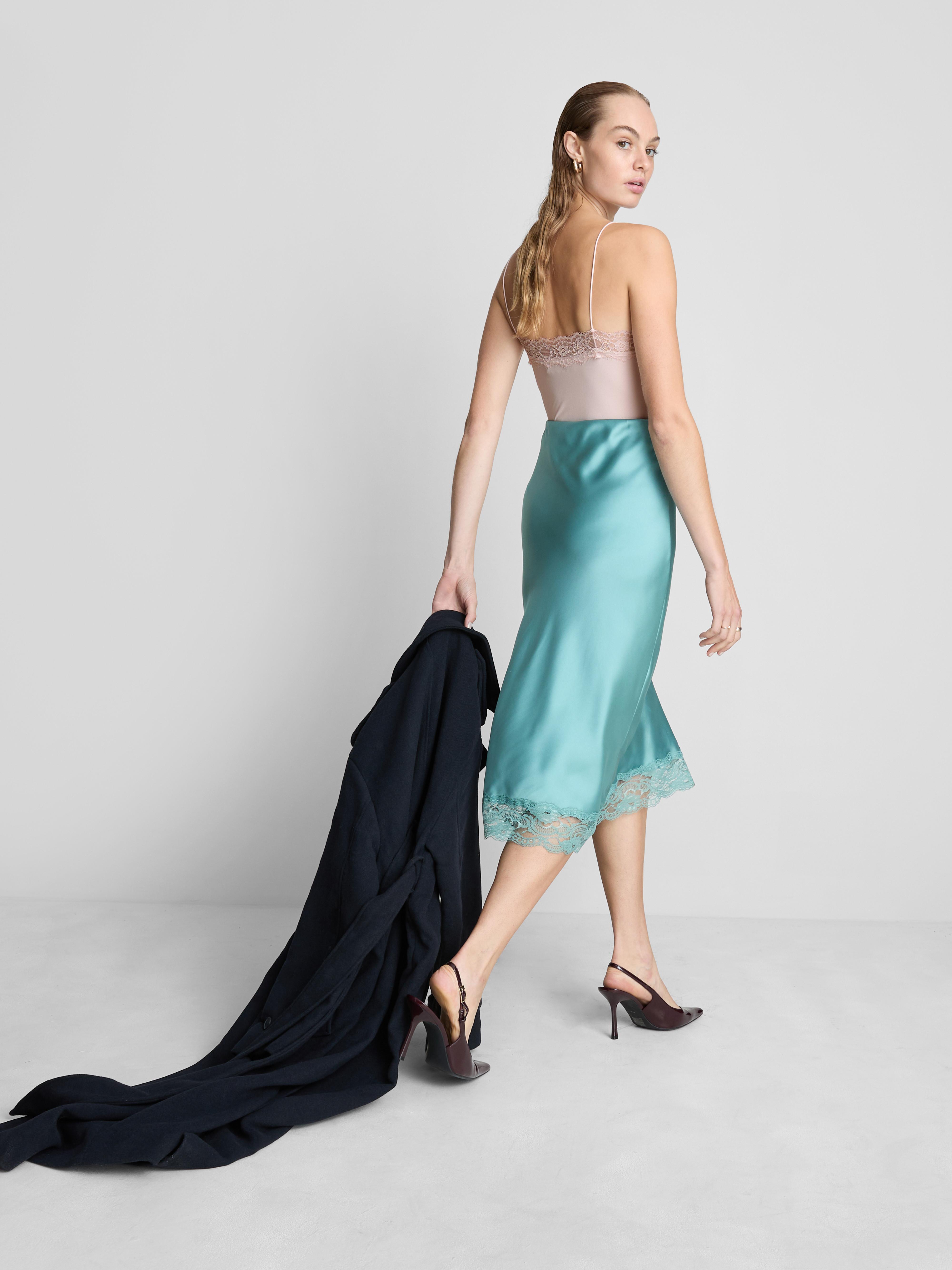 Finished with a delicate lace trim, this cami top has a V neckline and a regular fit