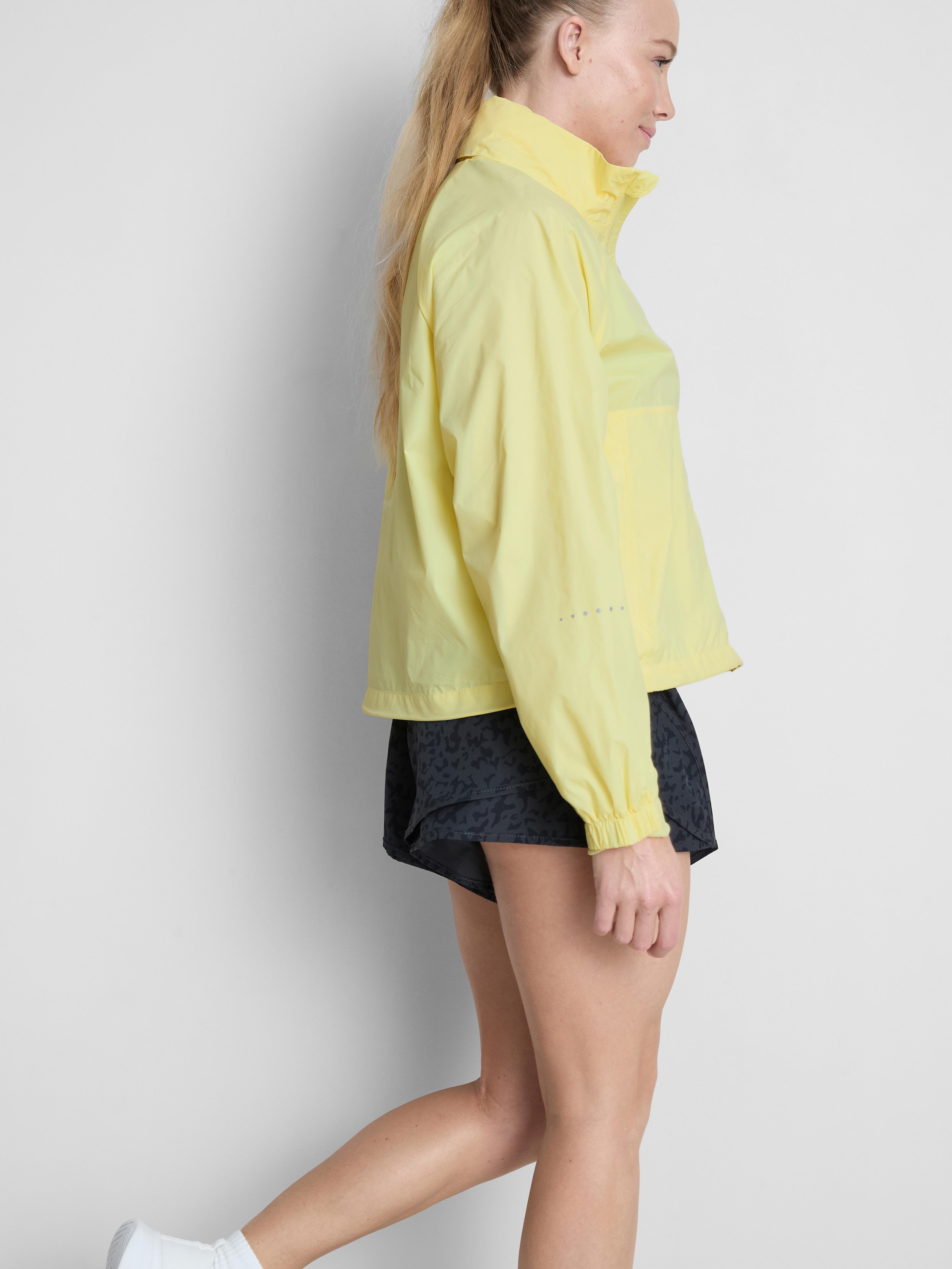 A lightweight half-zip jacket with a kangaroo pocket and foldaway hood