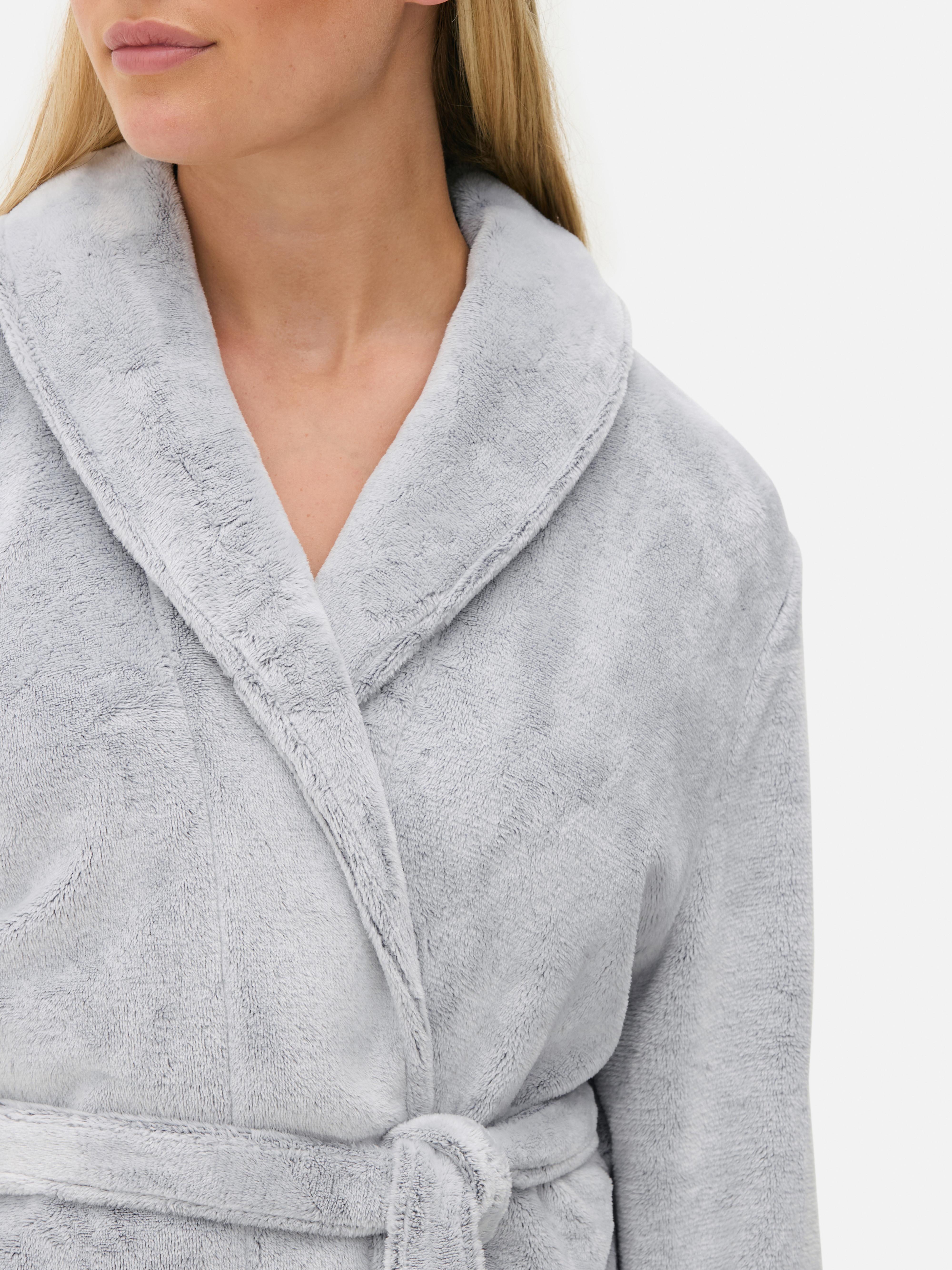 Super soft dressing gown with tie belt and pockets, in a mid length