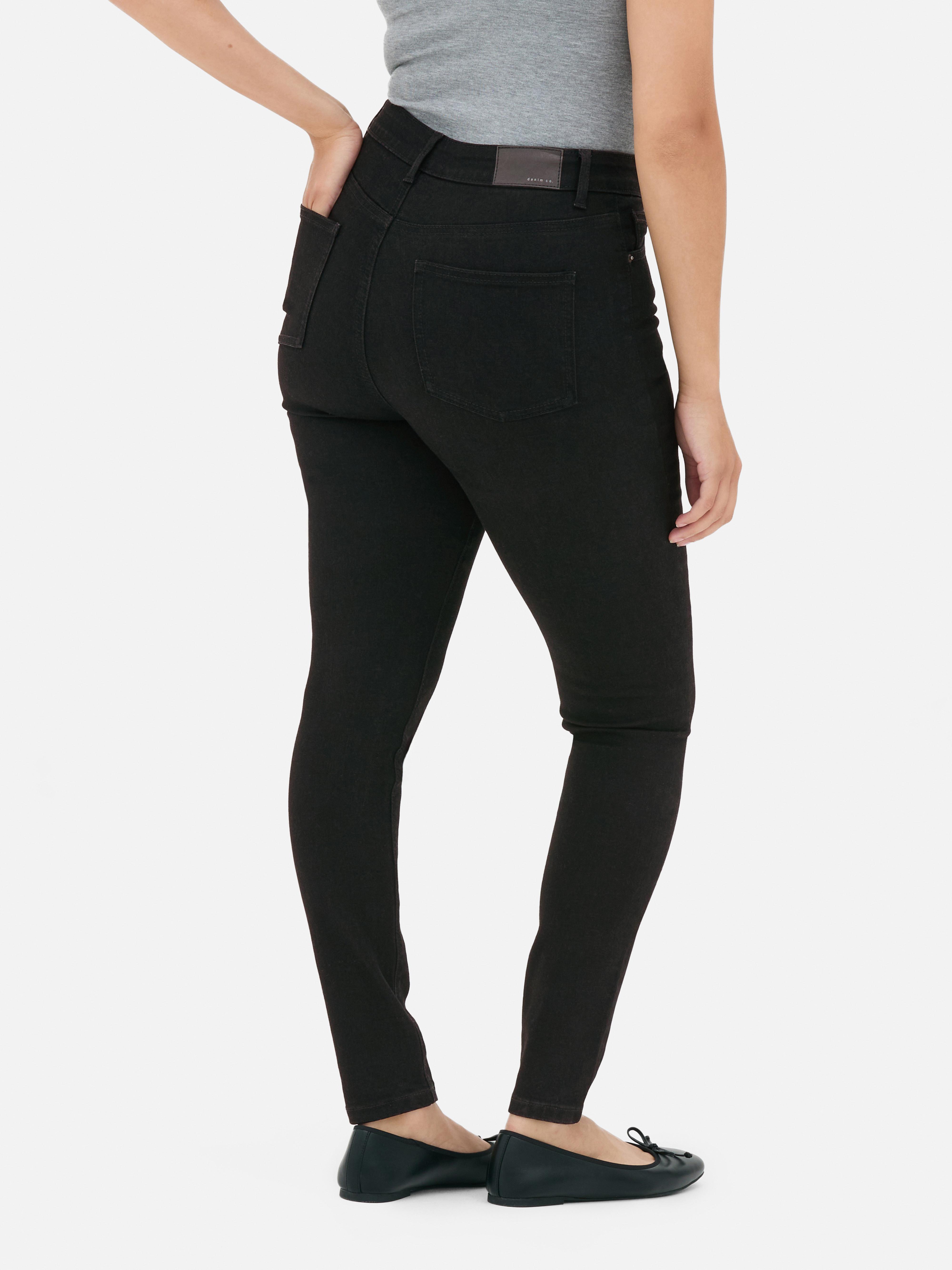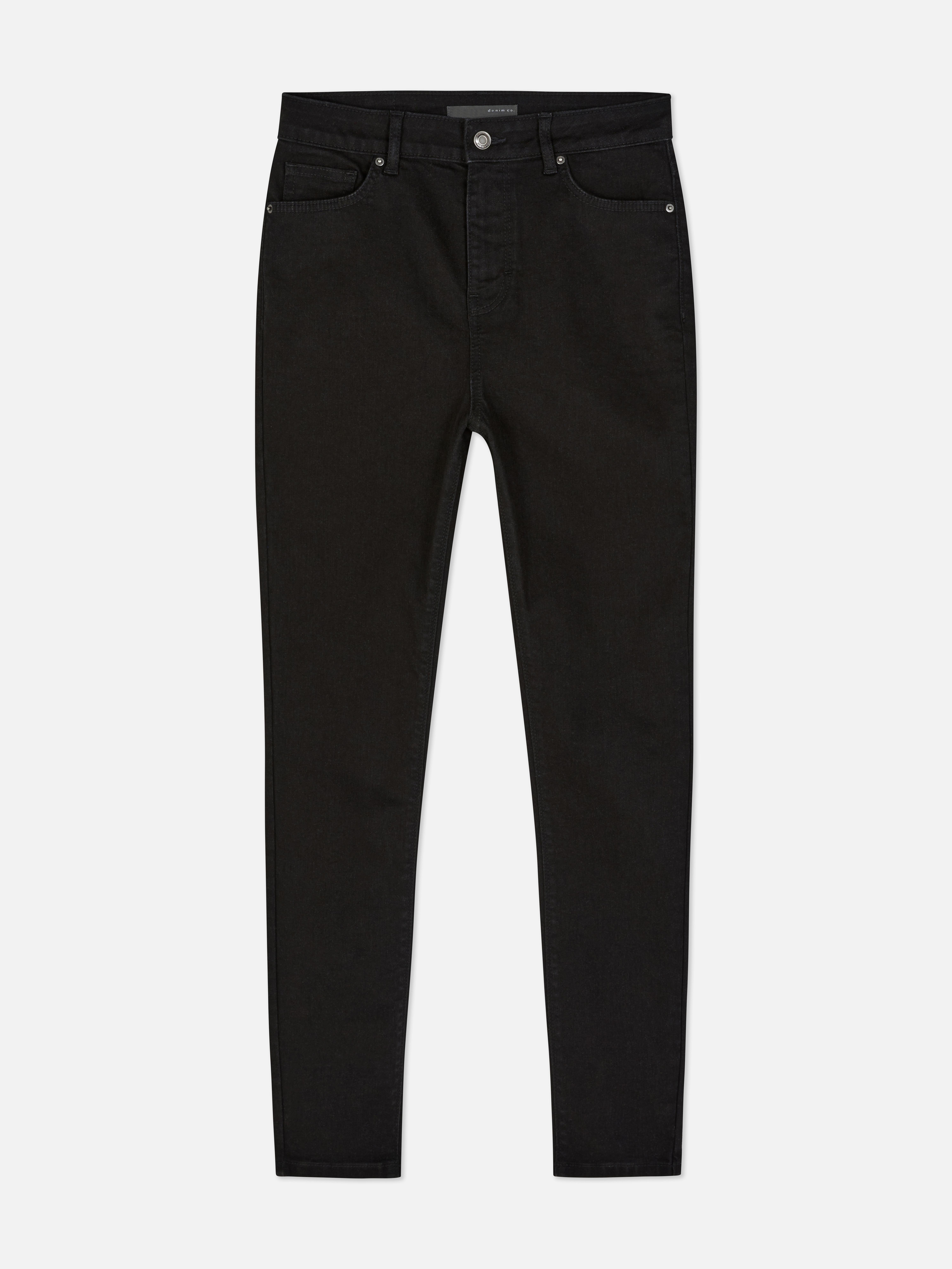A wardrobe essential - these black skinny jeans come in a mid-rise with classic five-pocket styling