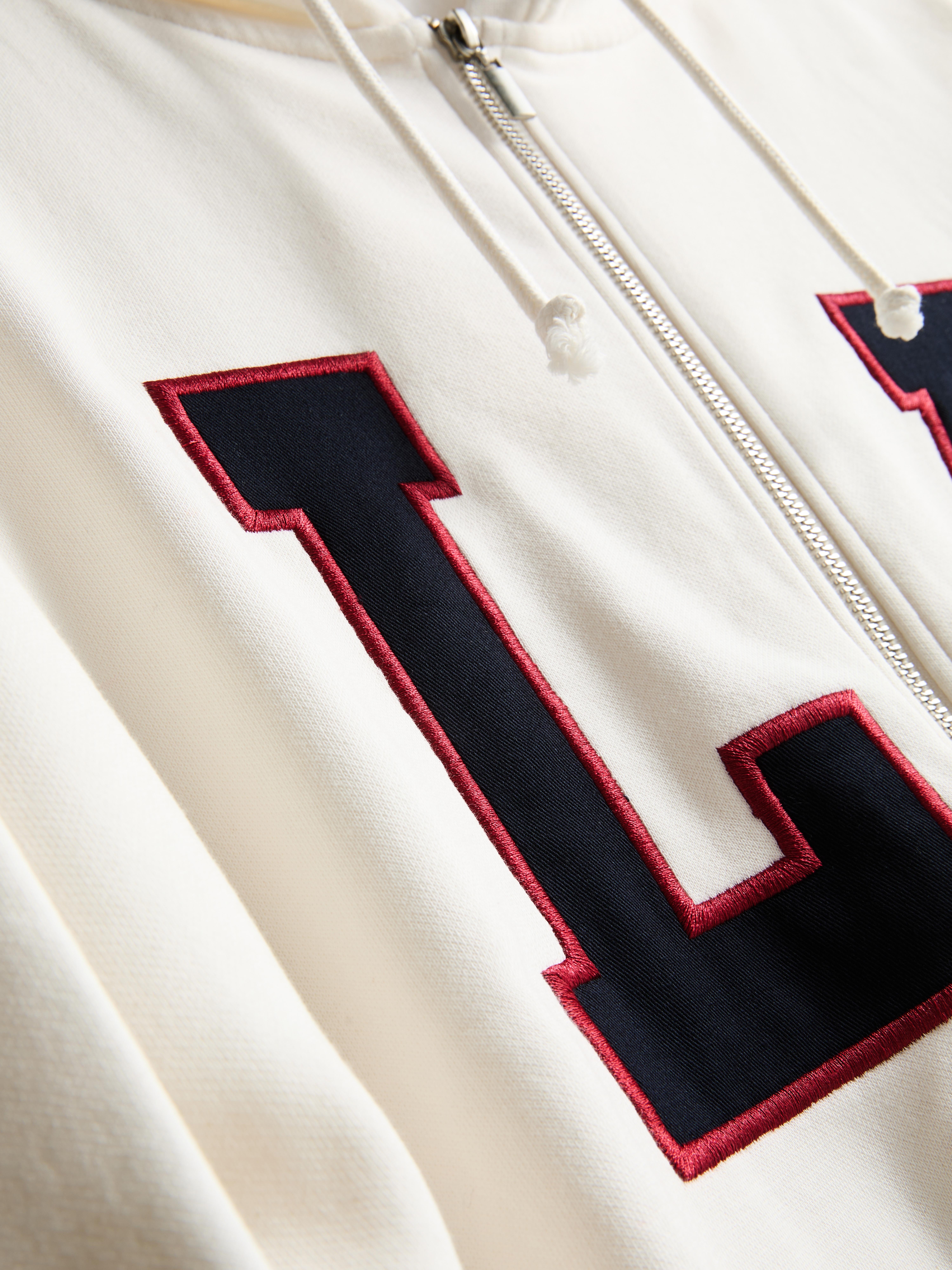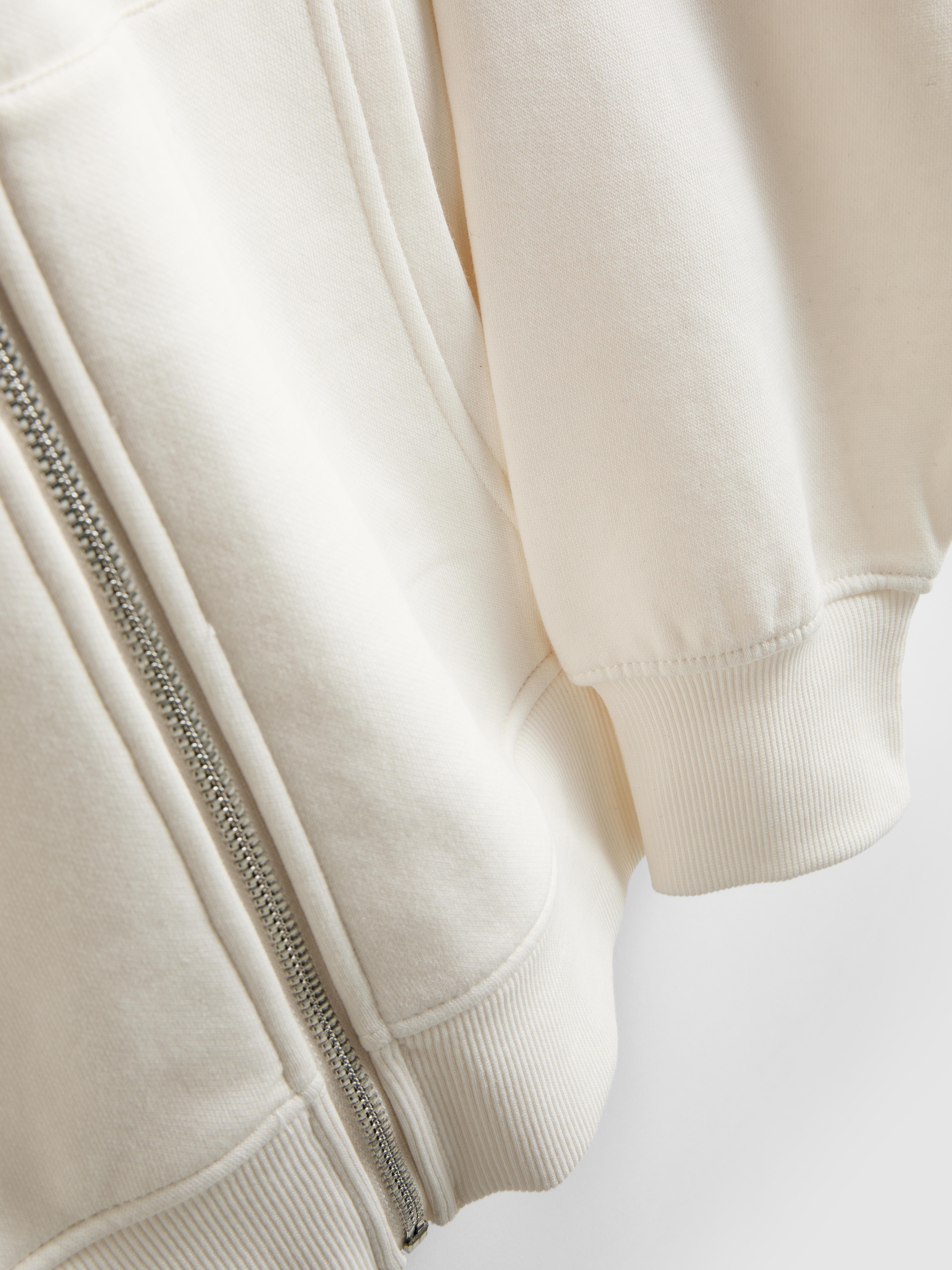 This zip through hoodie keeps comfort front and centre with its soft cotton-rich fabric and roomy oversized fit. The ivory tone gives it an easy, everyday feel, while the bold two-tone “LA” graphic on the chest adds a fun splash of colour. It’s designed with a full zip fastening, a lined drawstring hood and a split kangaroo pocket for practicality. The ribbed cuffs and hem help hold the shape, making it a great throw-on layer for busy days or relaxed moments.