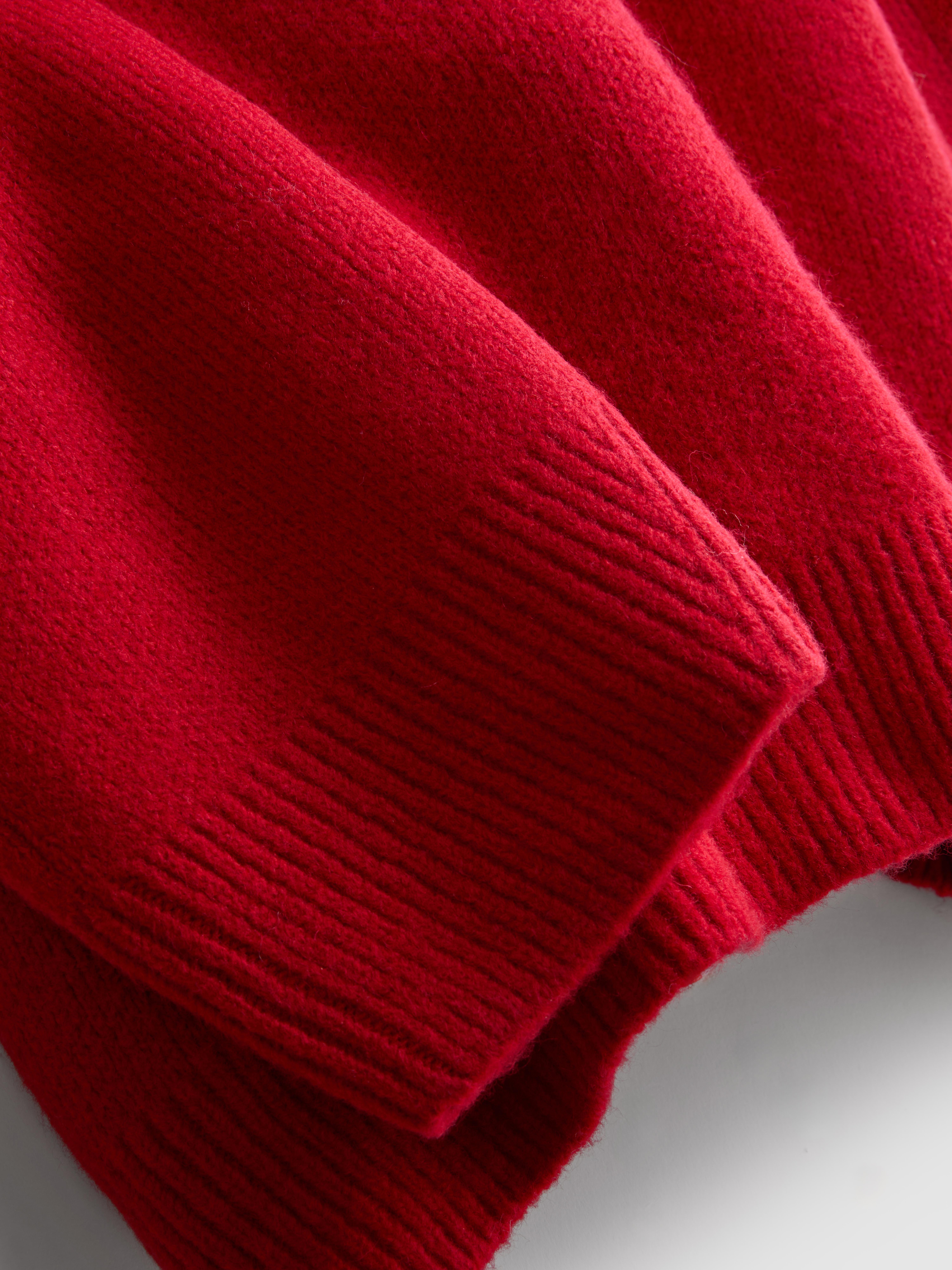 Add a bold pop of colour with this oversized knitted crew neck jumper. Crafted from a soft knit, it has a relaxed fit that’s comfortable and easy to wear. The ribbed crew neckline, cuffs, and hem keep the shape secure. In a bright red shade, it’s perfect for adding warmth and energy to your look, whether you’re staying in or heading out. A simple, vibrant piece that makes layering effortless and keeps you feeling snug all day.