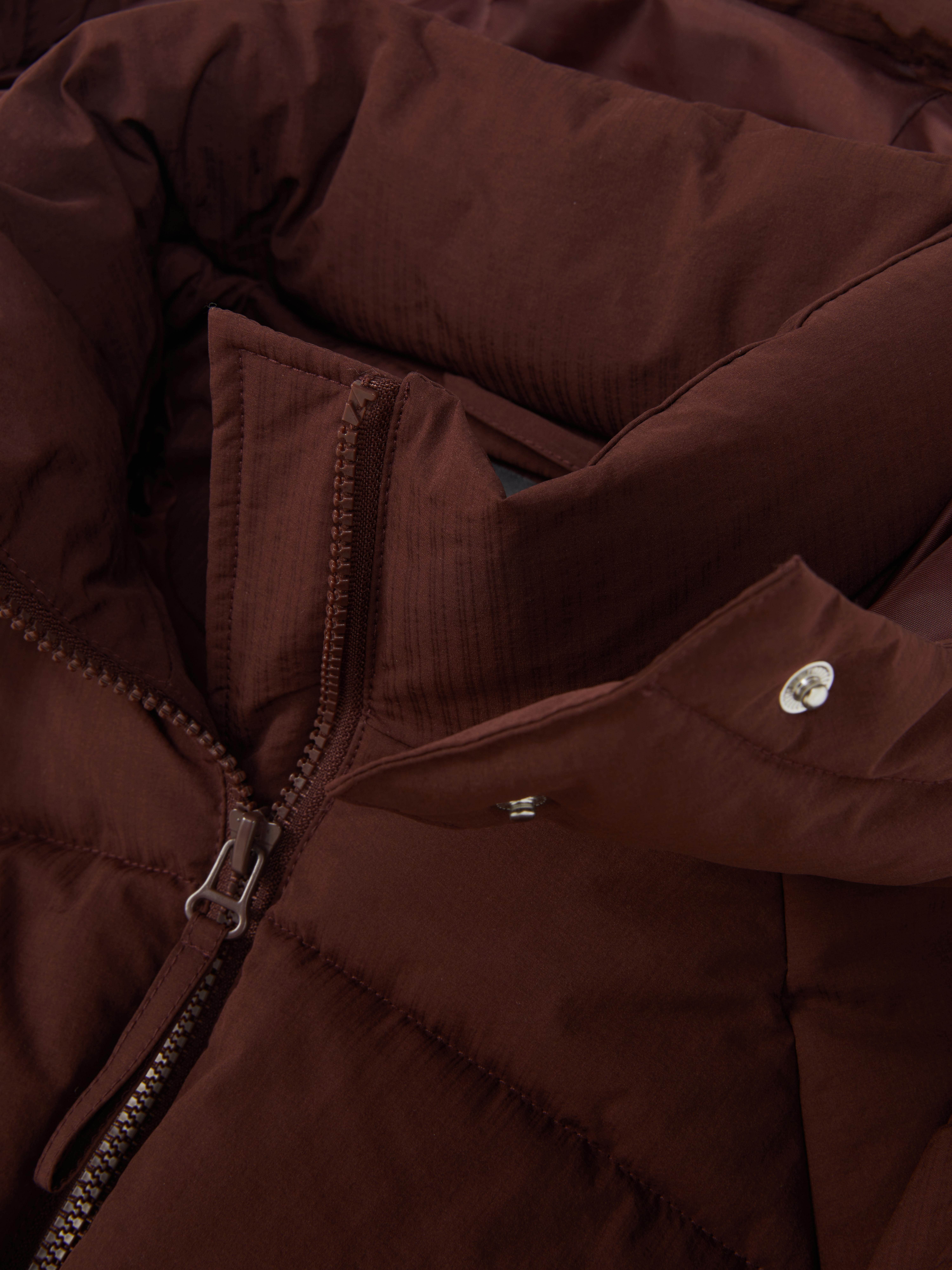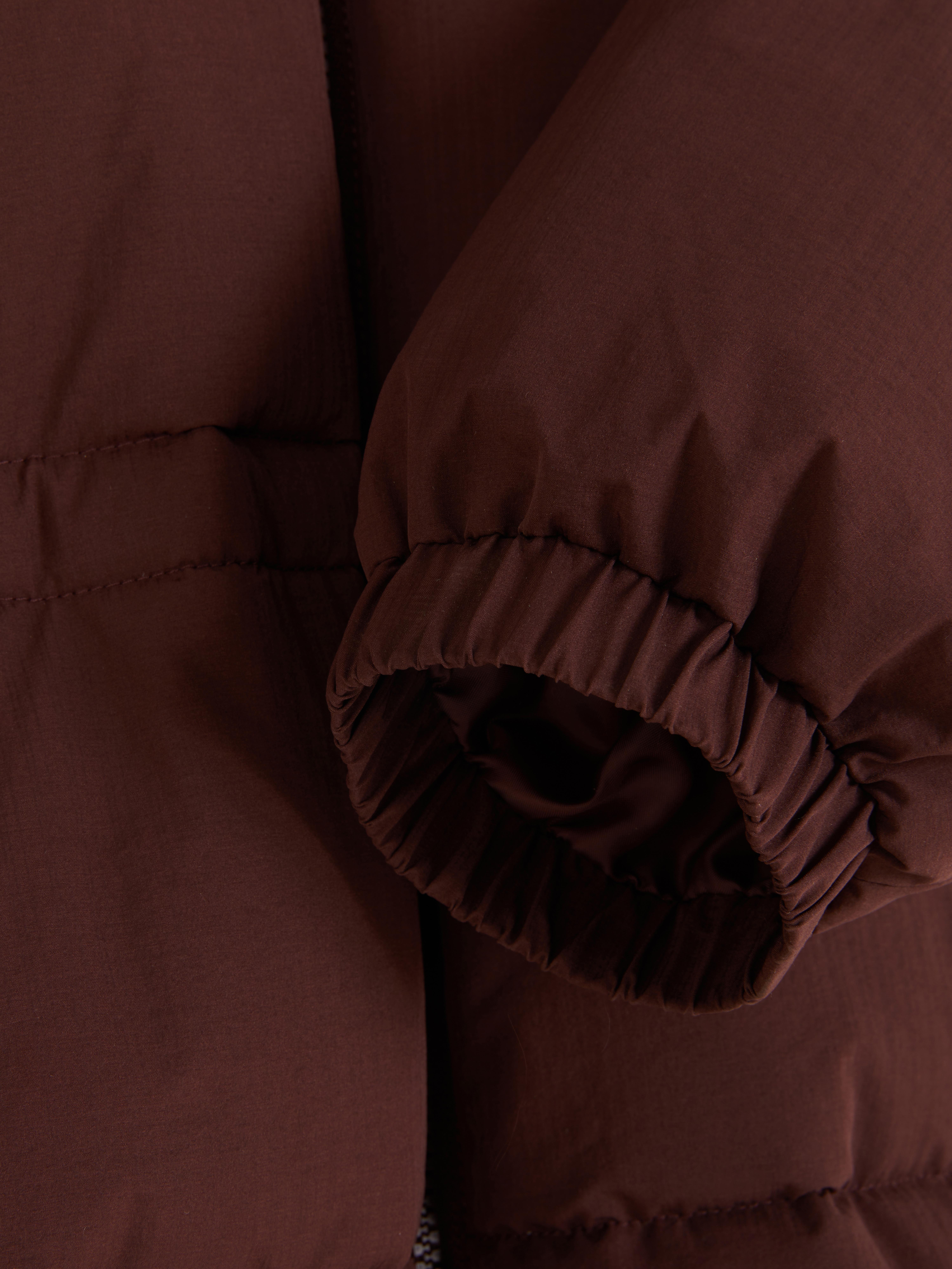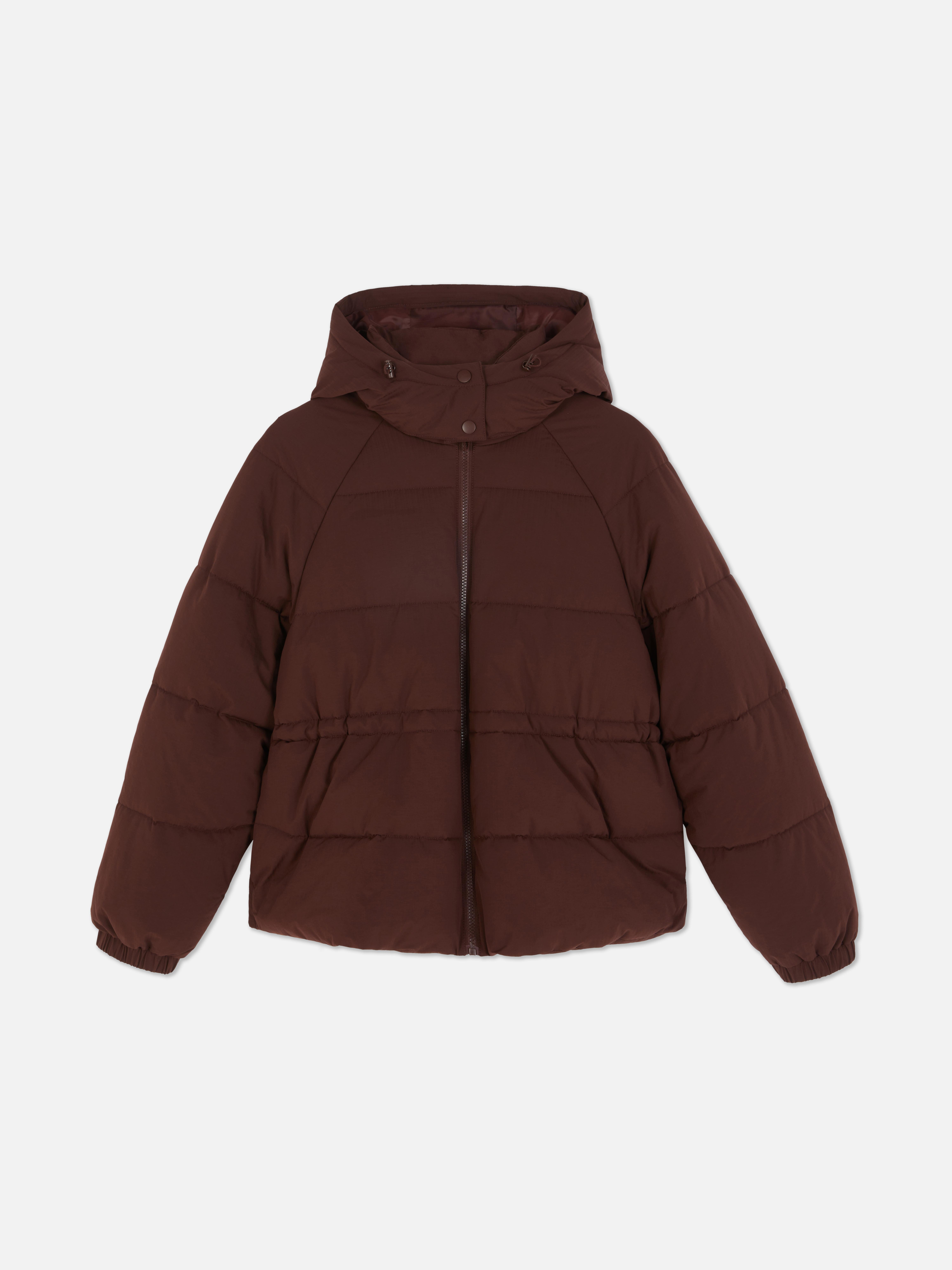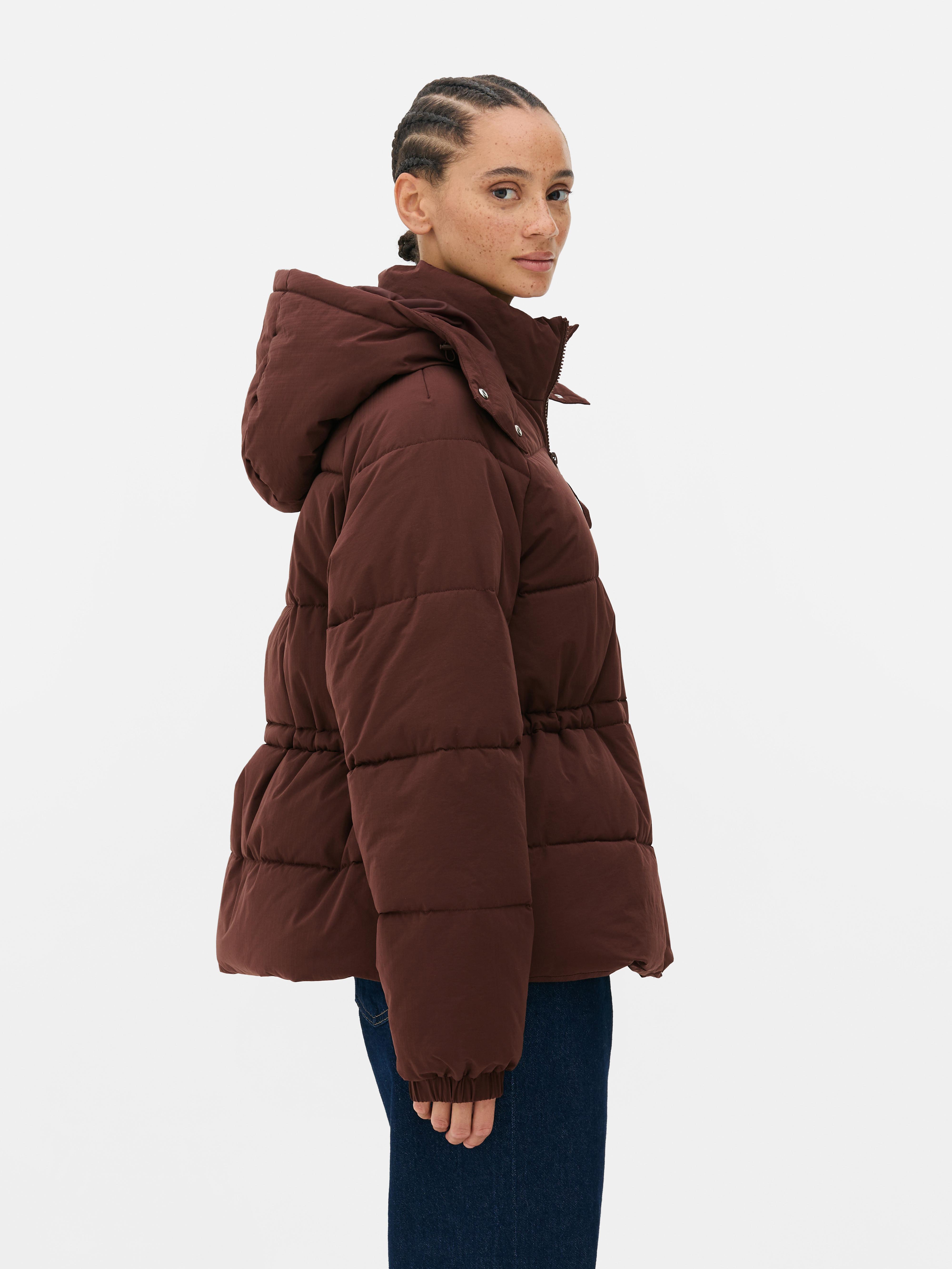 Wrap up warm in this padded cinch waist jacket, designed to keep you cosy and comfortable. The high-neck hood and full-zip front help to lock in heat, while the padded body adds that extra layer of warmth. With a relaxed fit through the body and a cinched waist, it’s all about comfort with a little shape. Long sleeves with elasticated cuffs keep things snug and discreet side pockets give you space for essentials. In a rich brown tone, it’s a cold weather go-to that pairs well with just about anything.