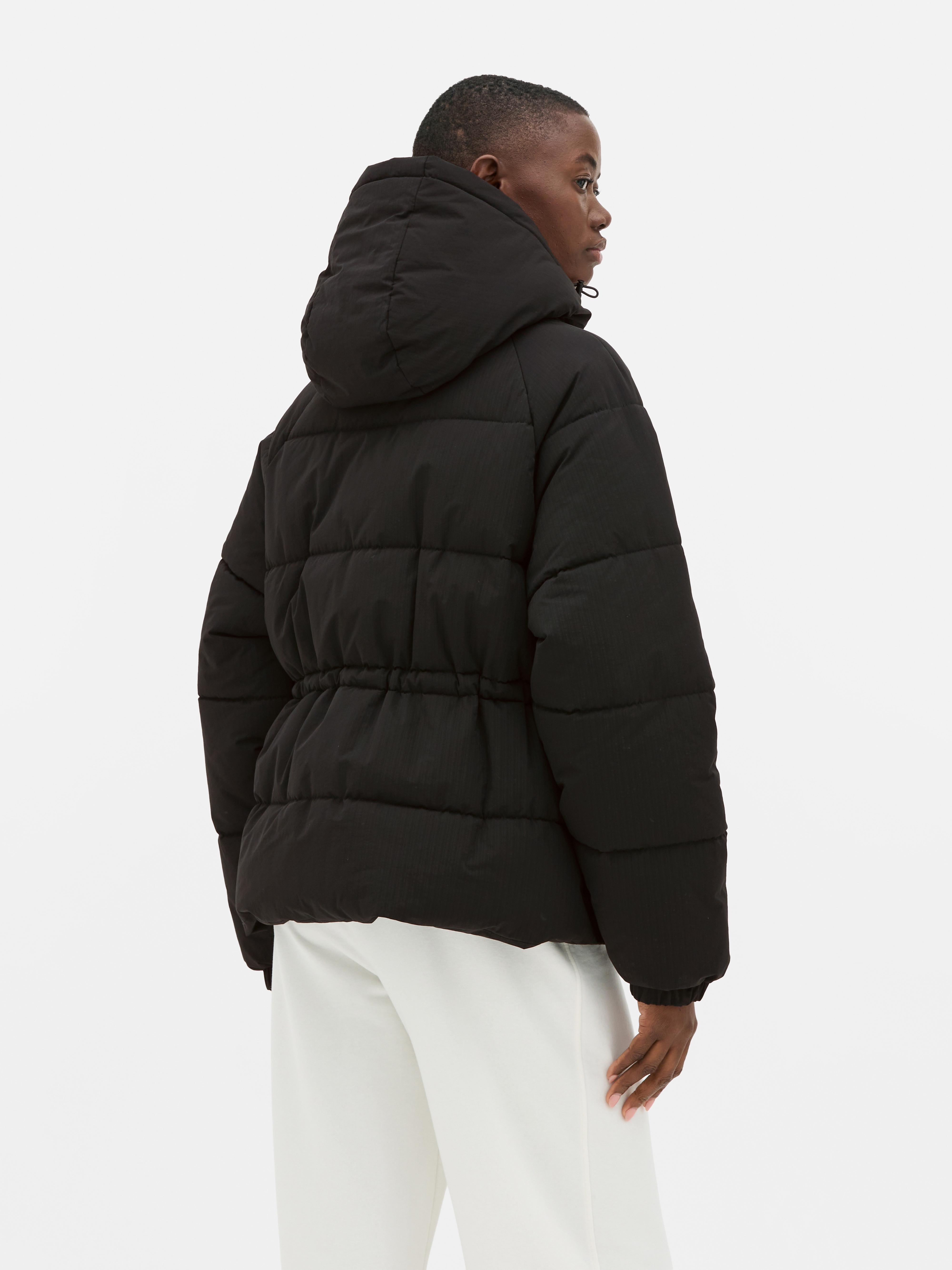 Wrap up warm in this padded cinch waist jacket, designed to keep you cosy and comfortable. The high-neck hood and full-zip front help to lock in heat, while the padded body adds that extra layer of warmth. With a relaxed fit through the body and a cinched waist, it’s all about comfort with a little shape. Long sleeves with elasticated cuffs keep things snug and discreet side pockets give you space for essentials. In a black shade, it’s a cold weather go-to that pairs well with just about anything.