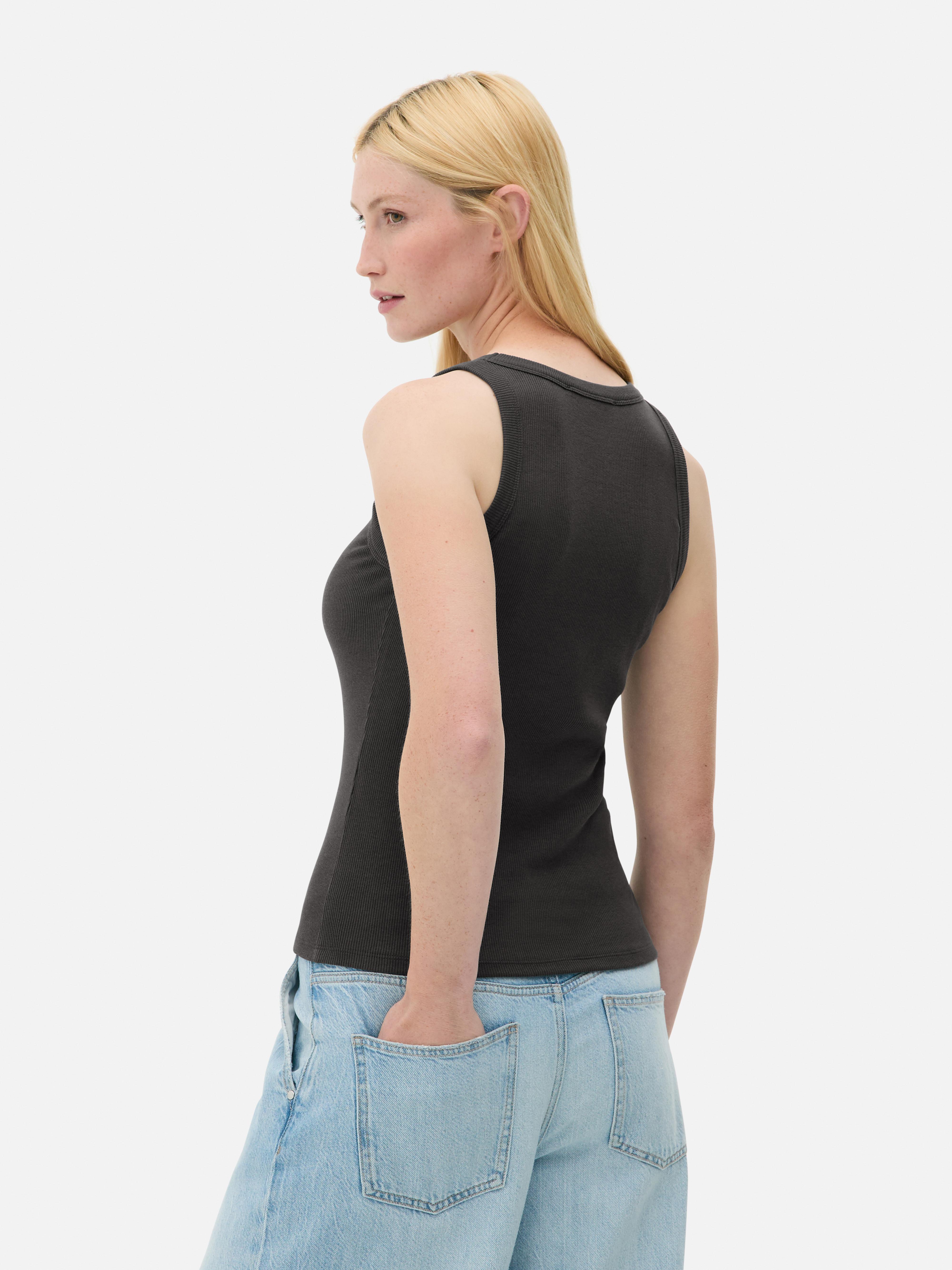 Keep it simple, keep it comfy. This charcoal racer vest is made from a soft cotton-rich blend with added stretch for an easy fit that moves with you. Designed with a high neckline and wide shoulder straps, it’s a great base layer or worn solo on warmer days. Whether you’re dressing it up or keeping it casual, this vest has you covered.