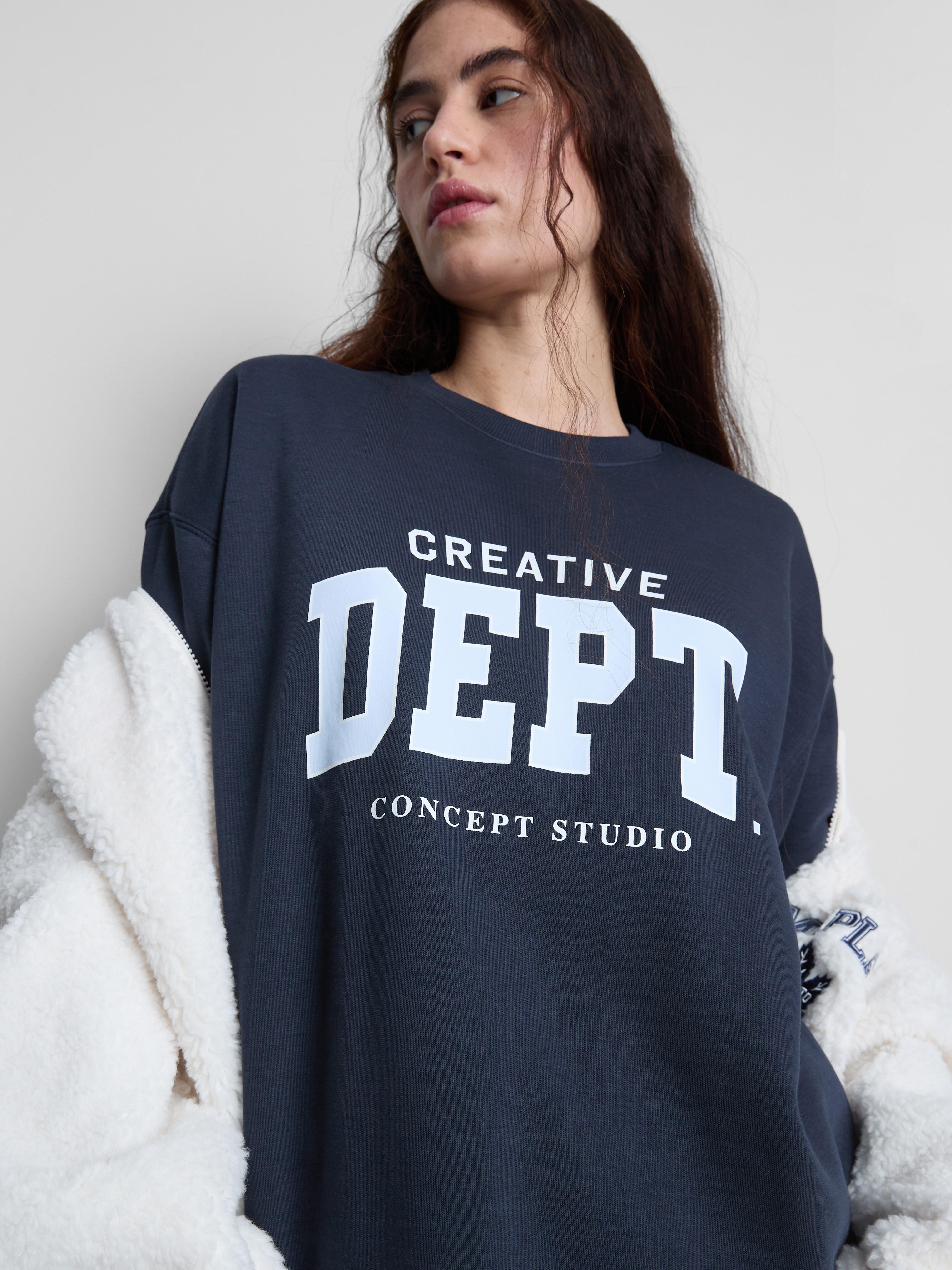 Add an easy-going touch to your wardrobe with this navy sweatshirt. Crafted from a soft cotton-blend fleece, it has a relaxed, slightly oversized fit for comfort. Classic ribbed trims at the neckline, cuffs, and hem keep the shape neat, while the smooth fabric feels soft against the skin. Perfect for wearing over activewear, after workouts, or as a casual top, it’s a versatile choice for comfort and style.