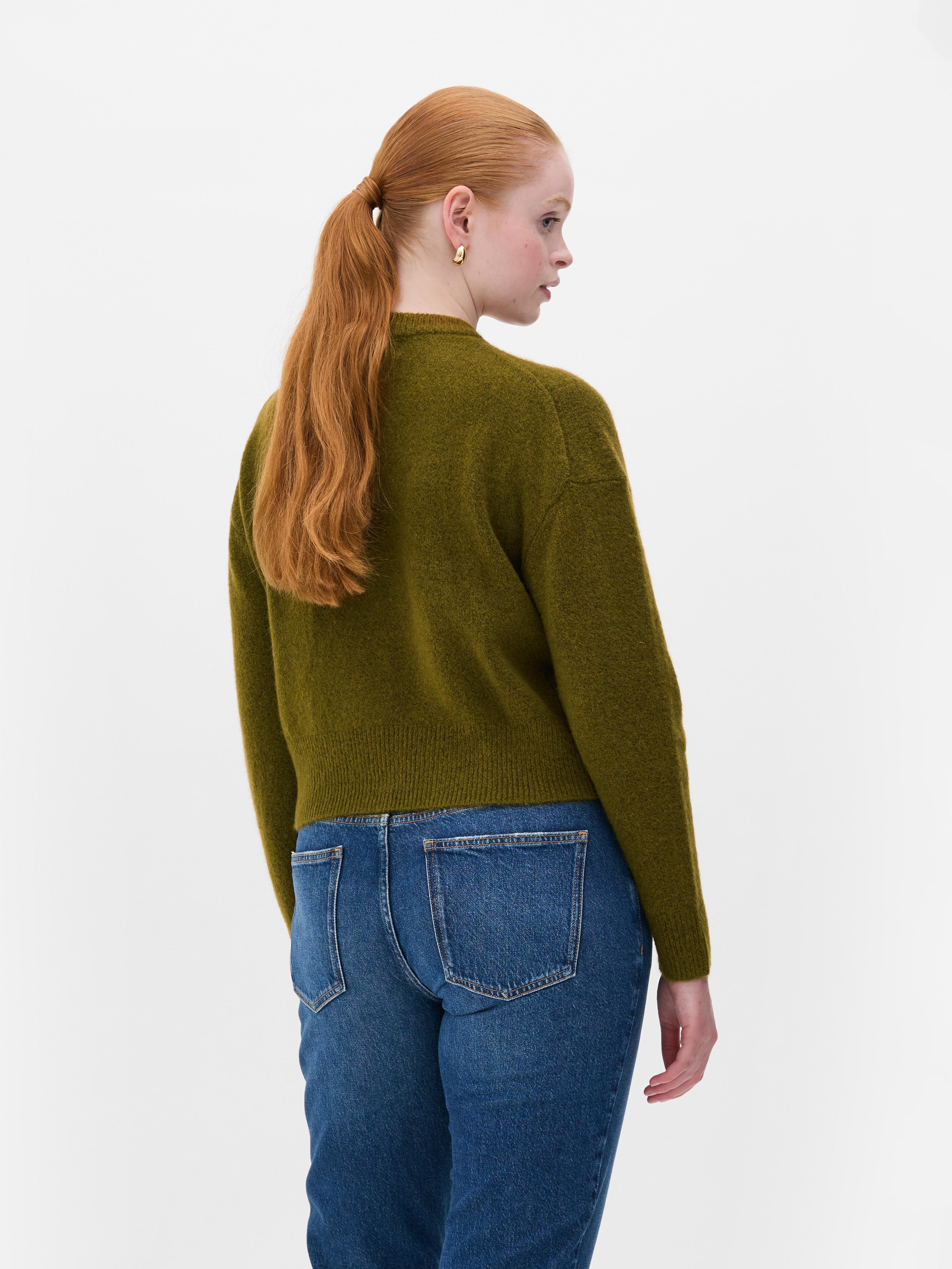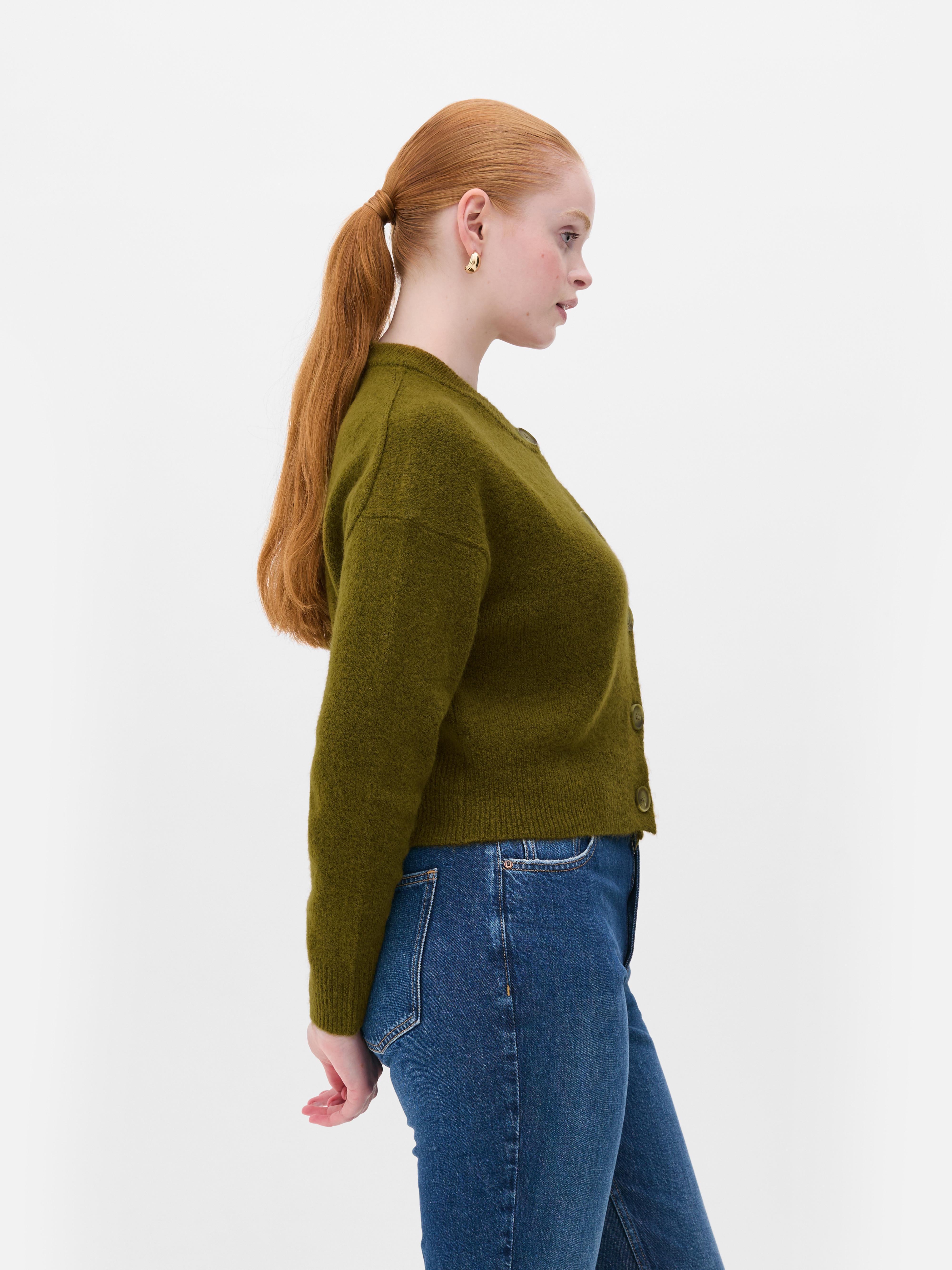 Get cosy in this relaxed fit cardigan with a crew neckline and classic button down front. Made from soft knit fabric, it’s designed with long sleeves, ribbed cuffs, and a ribbed hem for a comfy finish. The green shade adds a simple, timeless touch, making it an easy layer to throw on over tees or shirts any day of the week. How will you style it?