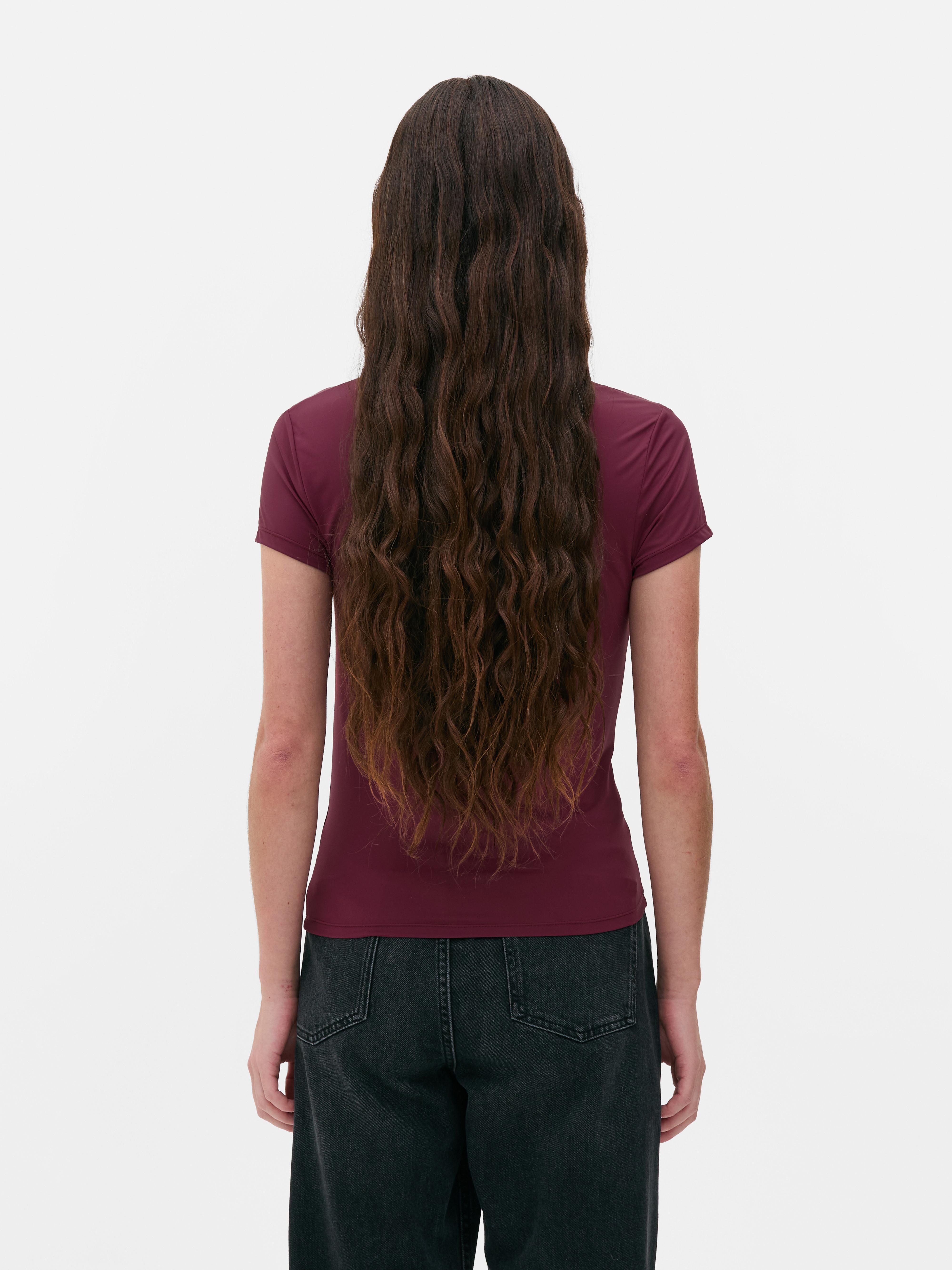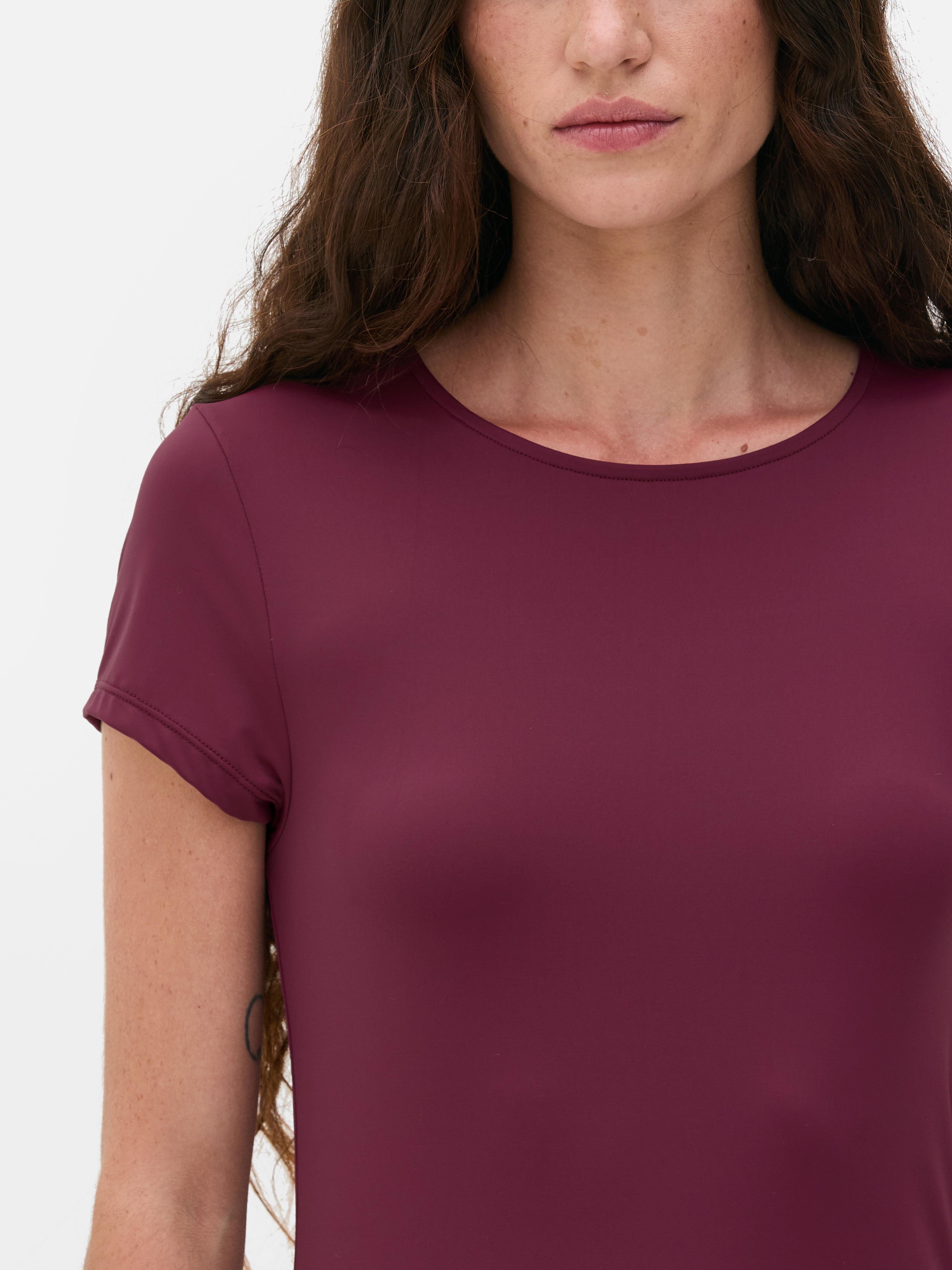 Fitted crewneck tee with short sleeves and a stretchy, second skin fabric