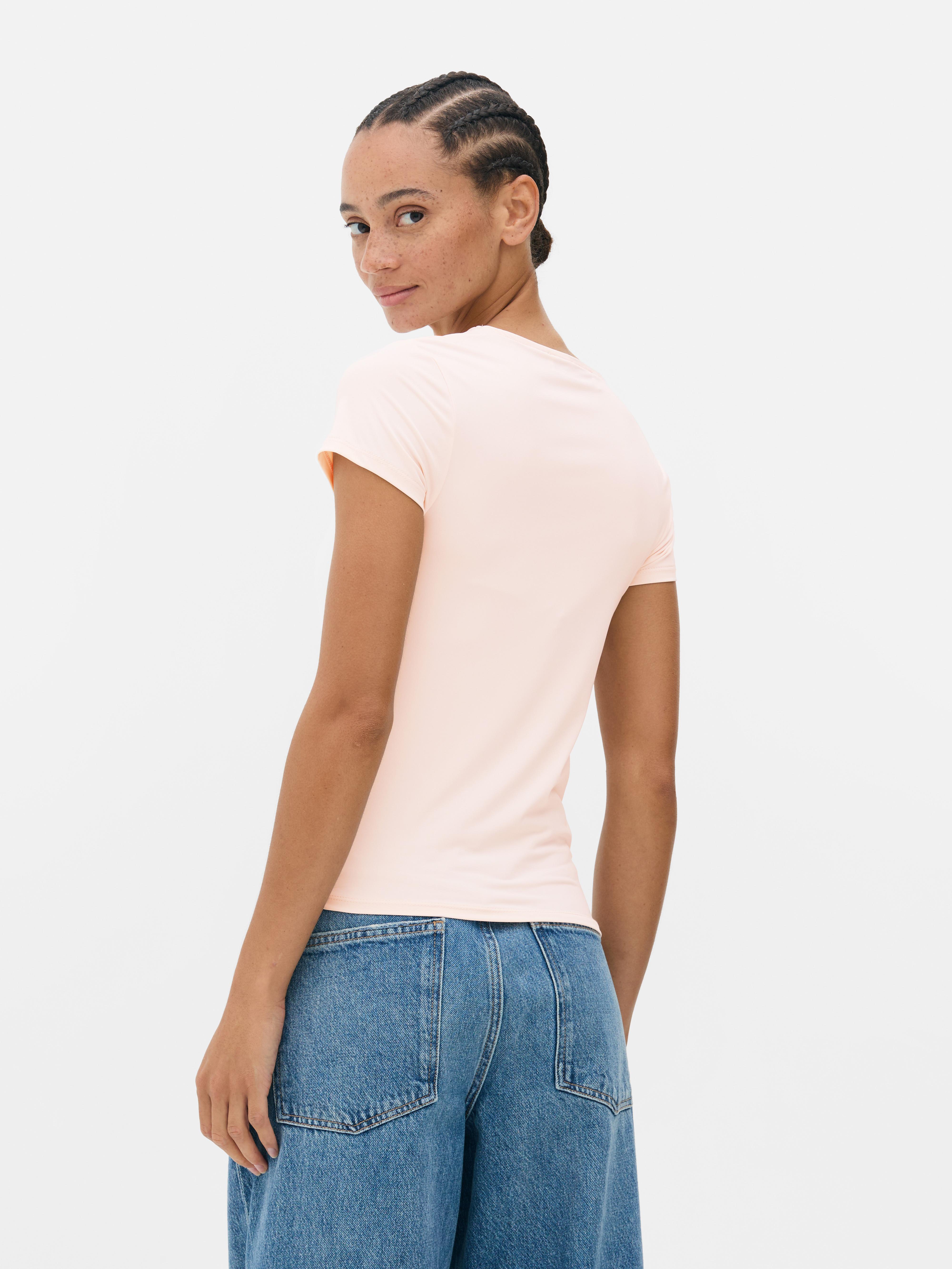 This Second Skin crew neck tee in light pink is designed to fit like a dream. Made from stretchy fabric, it hugs your body comfortably without feeling tight. The short sleeves and classic crew neckline keep it simple and timeless, while the regular length makes it perfect for layering or wearing alone. Whether you’re dressing it up or keeping things casual, this tee offers a smooth, sleek finish that feels like a second skin all day long.