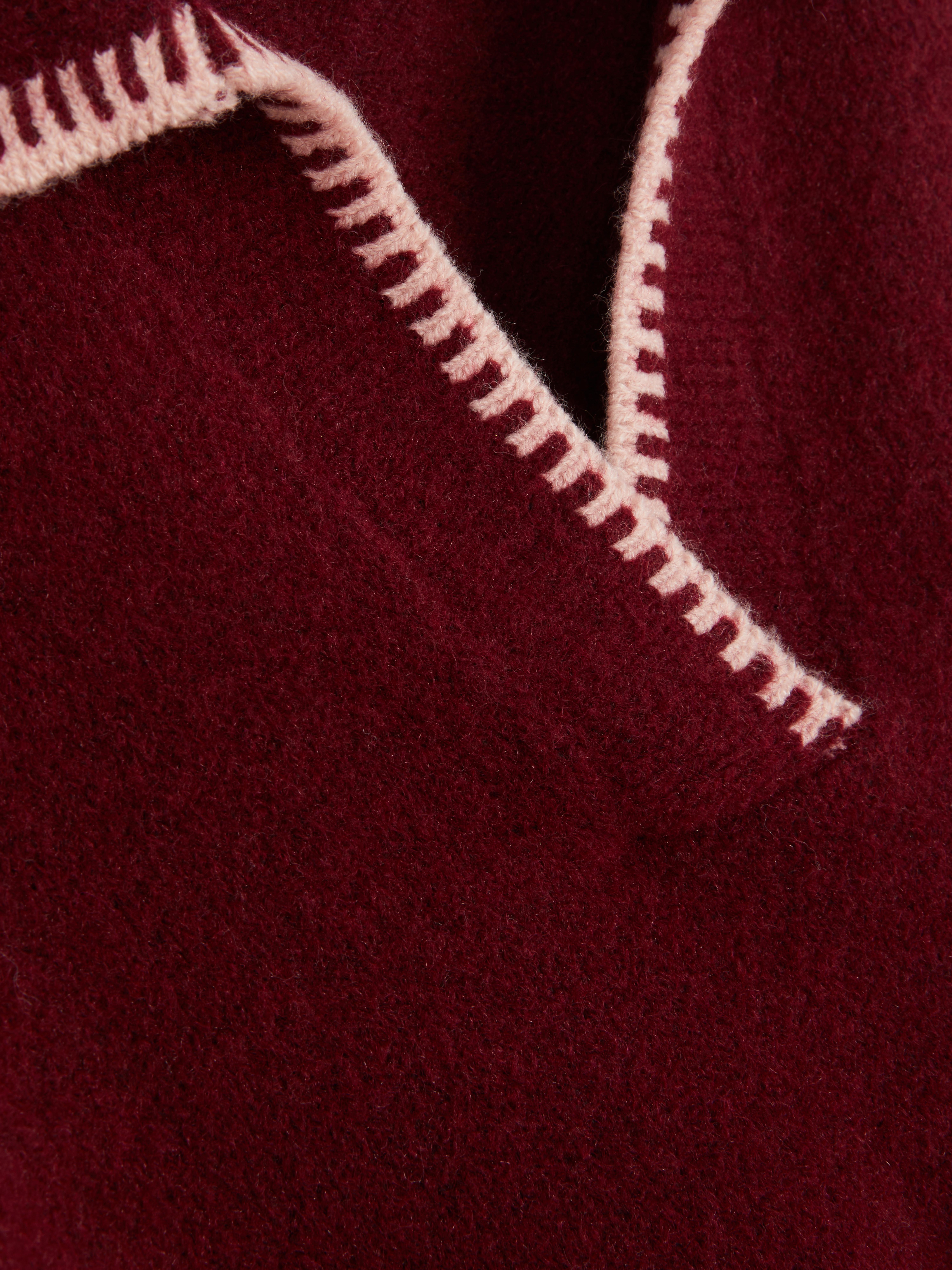 This polo sweater comes with a V-neckline, long sleeves and contrast stitch detailing