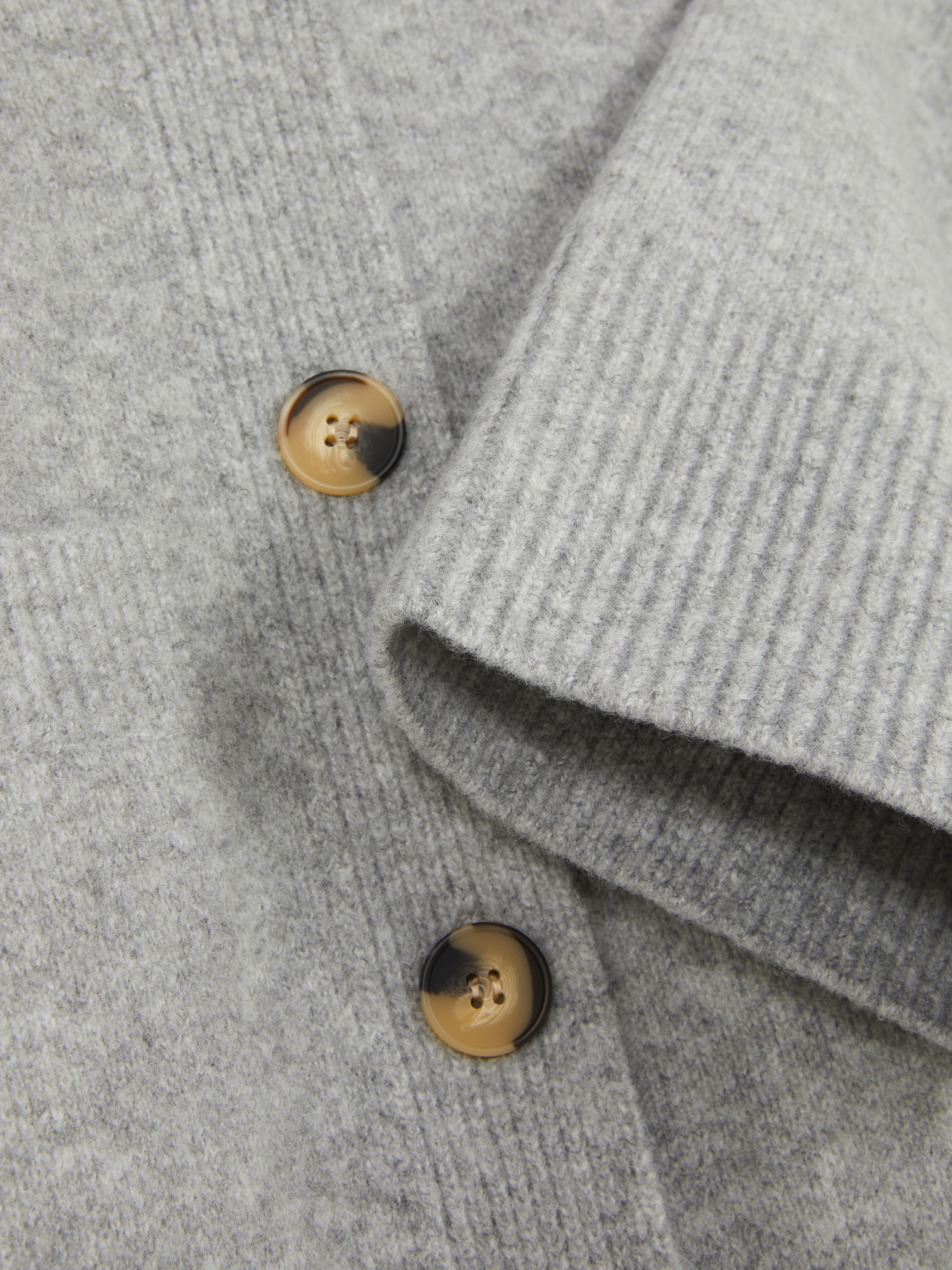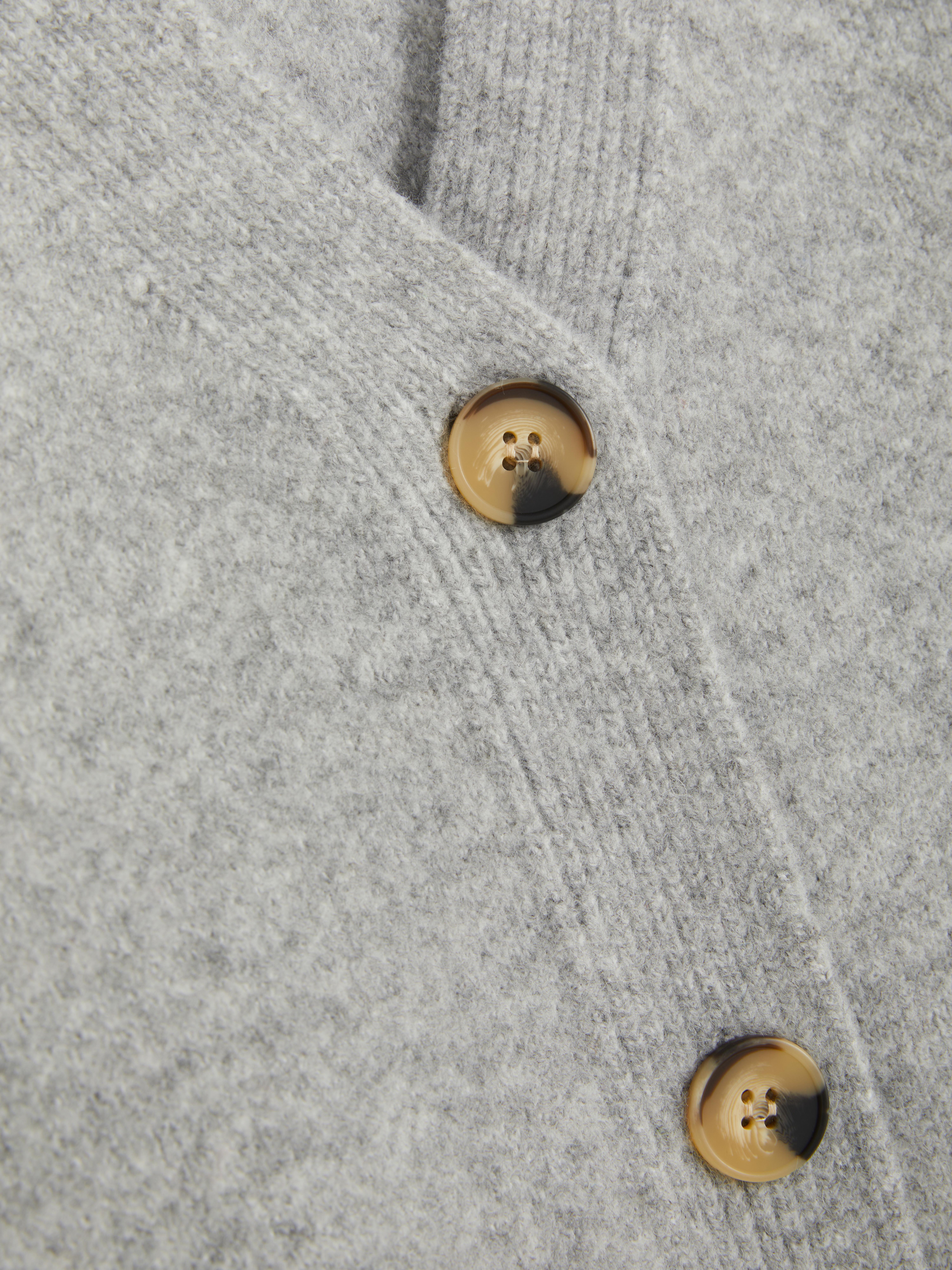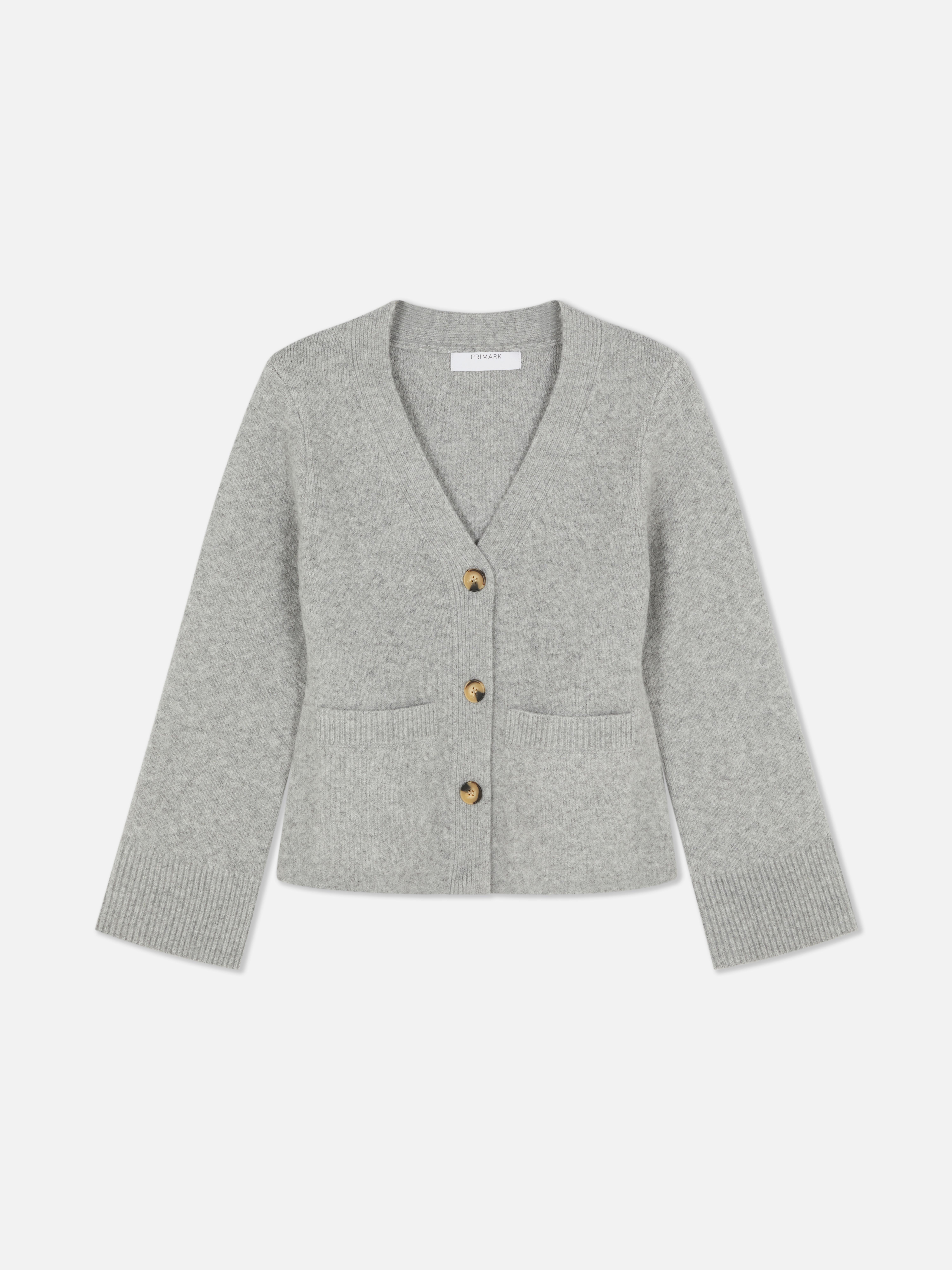 Give your layers a fresh update with this structured cardigan in a versatile grey shade. Designed with a V-neckline and button-front closure, it’s finished with ribbed trims at the cuffs for a neat touch. The slightly cropped, relaxed fit and sculpted silhouette add shape while keeping things easy to wear. Two front patch pockets bring both style and practicality, making it an effortless staple for everyday outfits.