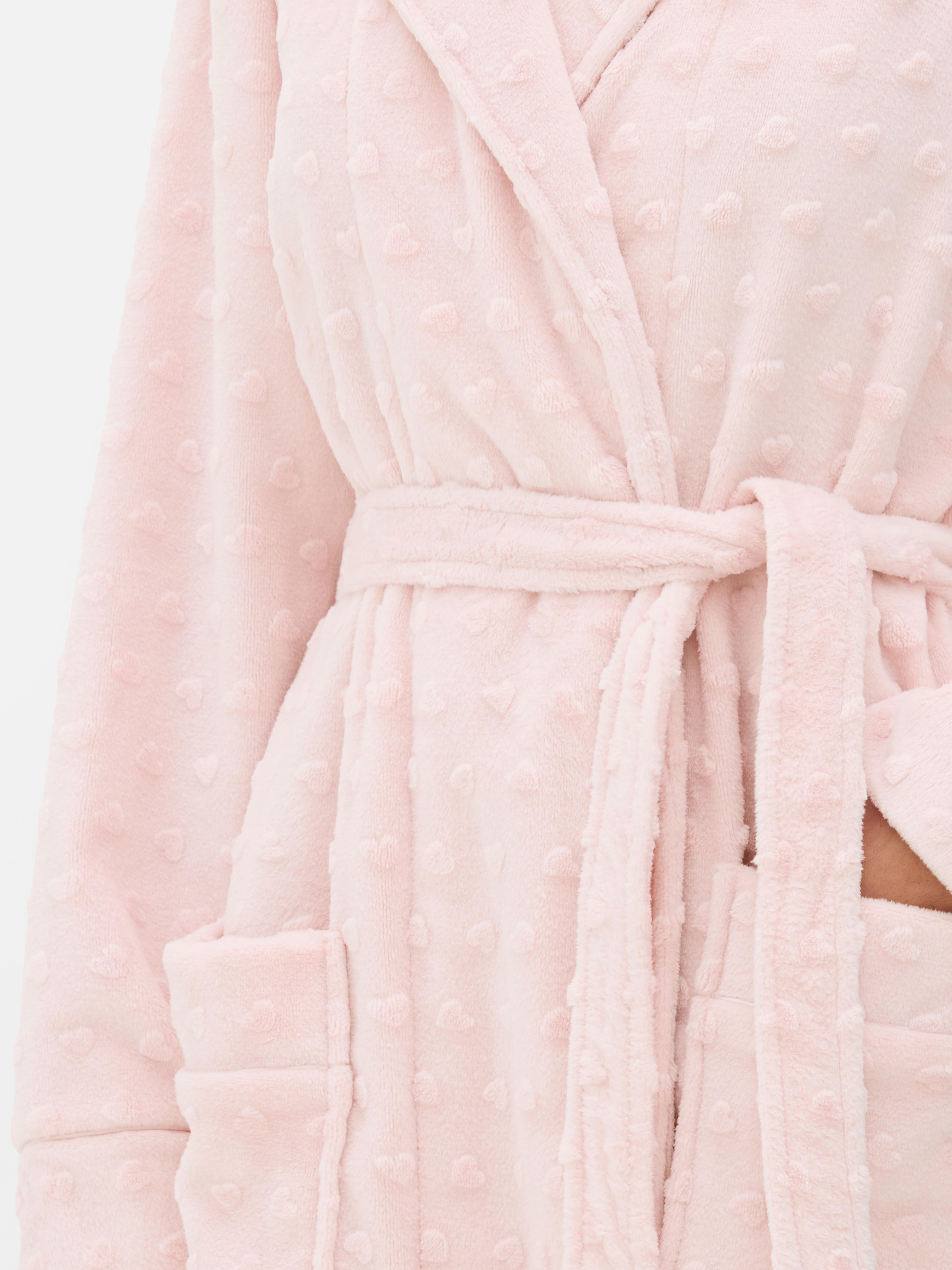 Wrap yourself in comfort with this cosy textured robe. Cut to a midi length with a soft, plush feel, it’s made for slow mornings and chilled evenings. The wrap around style and tie-waist belt keep it snug, while the shawl collar and long sleeves add an extra layer of warmth. Two roomy front pockets are perfect for keeping your hands toasty or holding your essentials. Finished in a solid light pink, it’s the kind of piece that you’ll never want to take off.