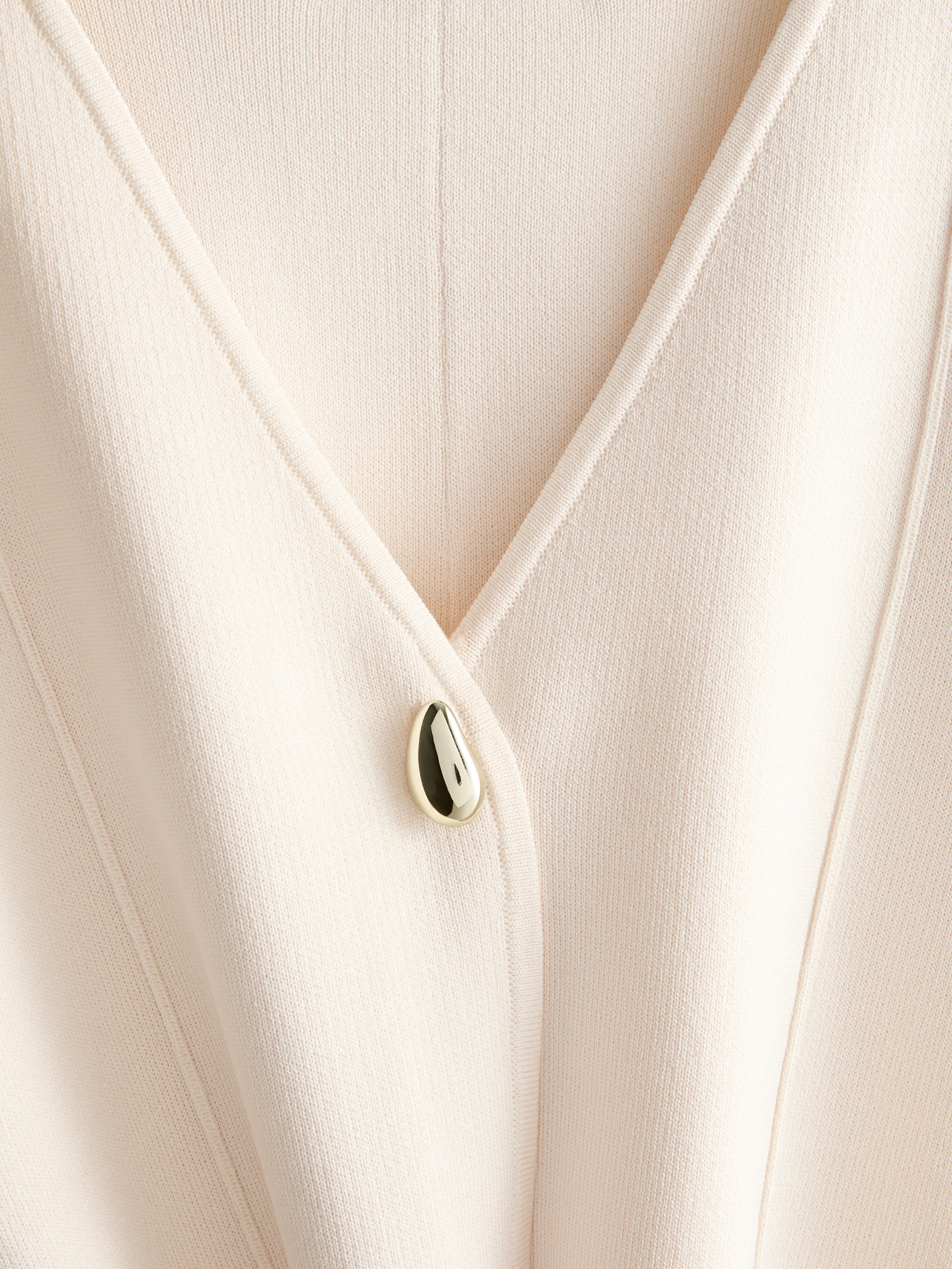 Keep your look polished with this seam detail cardigan from The Edit. Crafted from a smooth knit in an ivory shade, it has a clean V-neck and long sleeves for a classic finish. A single-button closure adds a subtle focal point, while vertical seam detailing from shoulder to hem enhances the silhouette and fit. Cut to a regular, slightly fitted shape, it layers easily under coats or works on its own for a simple, elegant look. Minimalist design with thoughtful shaping makes this cardigan a versatile piece for everyday wear.