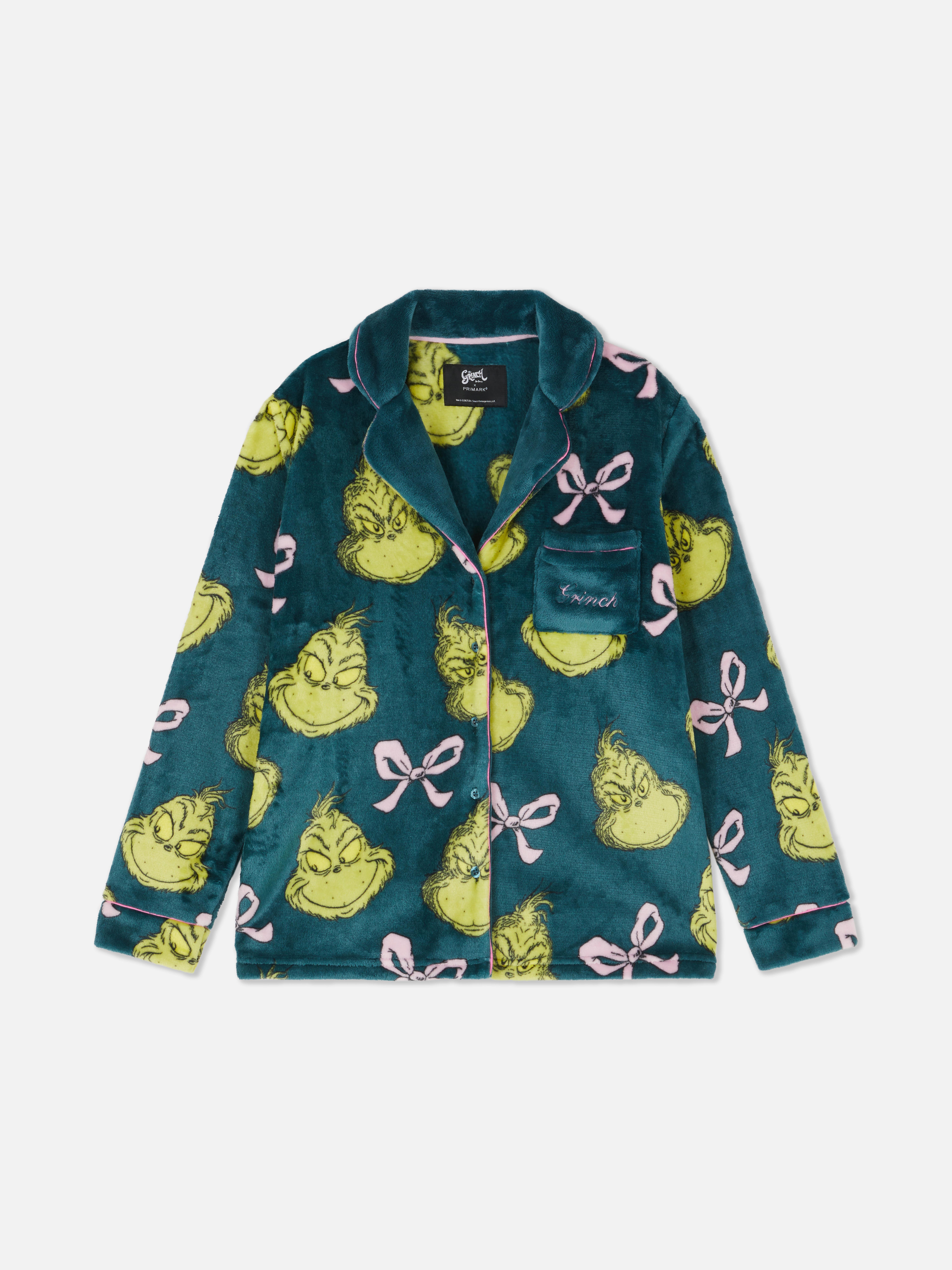 Christmas pajama top in soft fleece with an allover print of The Grinch