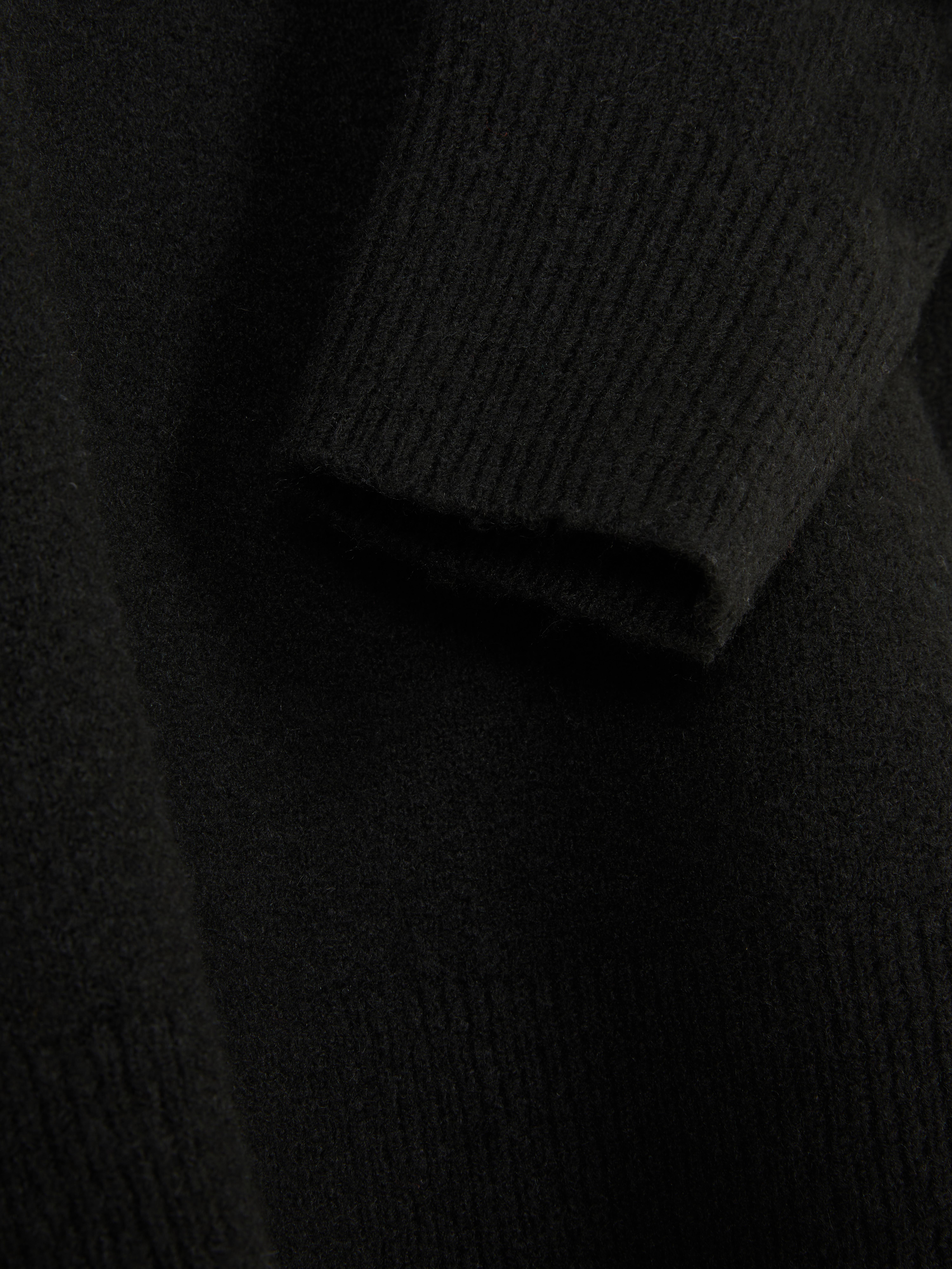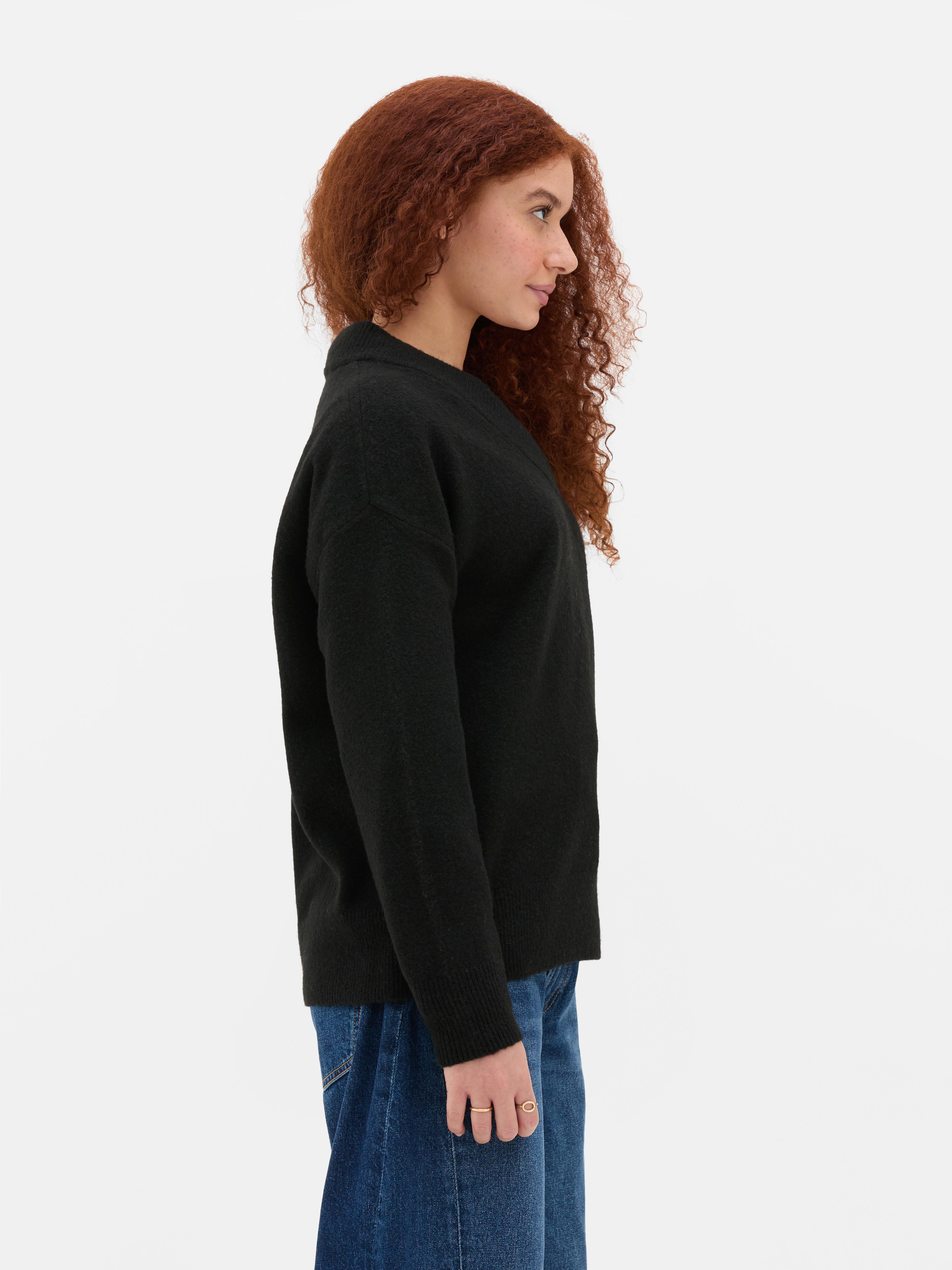Score big on style with this V-neck jumper. It drapes effortlessly thanks to its oversized fit, and features rib trims that sit securely in all the right places. In a neutral shade, it’s ready to be dressed up or down: the options are endless! For a casual look, style it with a pair of wide leg jeans and some trainers. Or, for a more elevated feel, layer it over a crisp white shirt and pair it with a mini skirt, ankle socks and loafers.