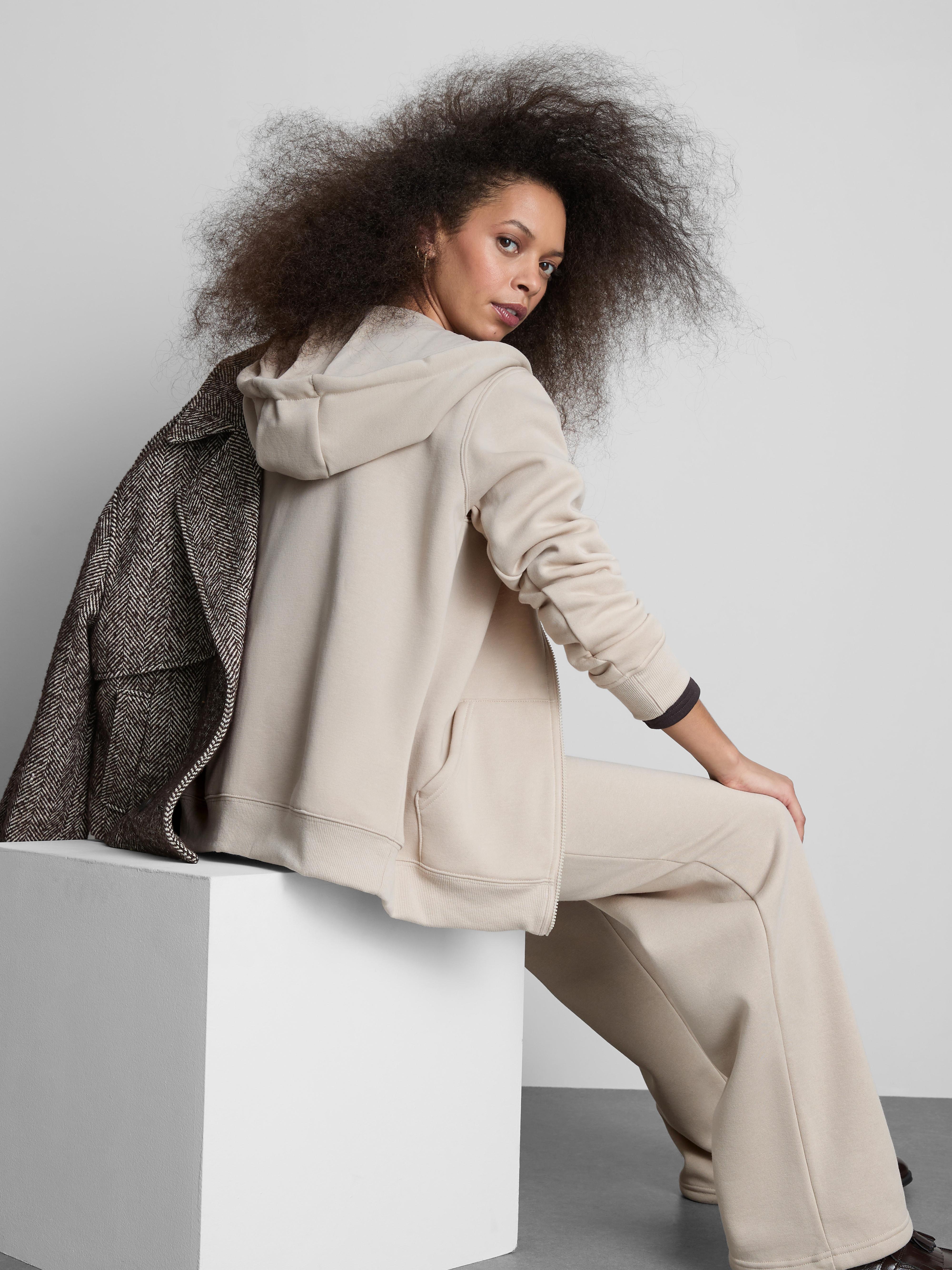 This stone zip-through hoodie is your go-to layer for casual comfort and everyday versatility. Featuring a full-length zipper, this relaxed-fit hoodie can be worn open or zipped for adjustable warmth and style. A drawstring hood and split kangaroo pocket add functionality, while the soft, fleecy fabric delivers cosy, all-day comfort. It pairs effortlessly with joggers, jeans, or leggings. Ribbed cuffs and hem help retain warmth and shape, making it ideal for layering through changing seasons. Whether you're lounging at home or heading out, this hoodie keeps things easy, comfortable, and effortlessly cool.