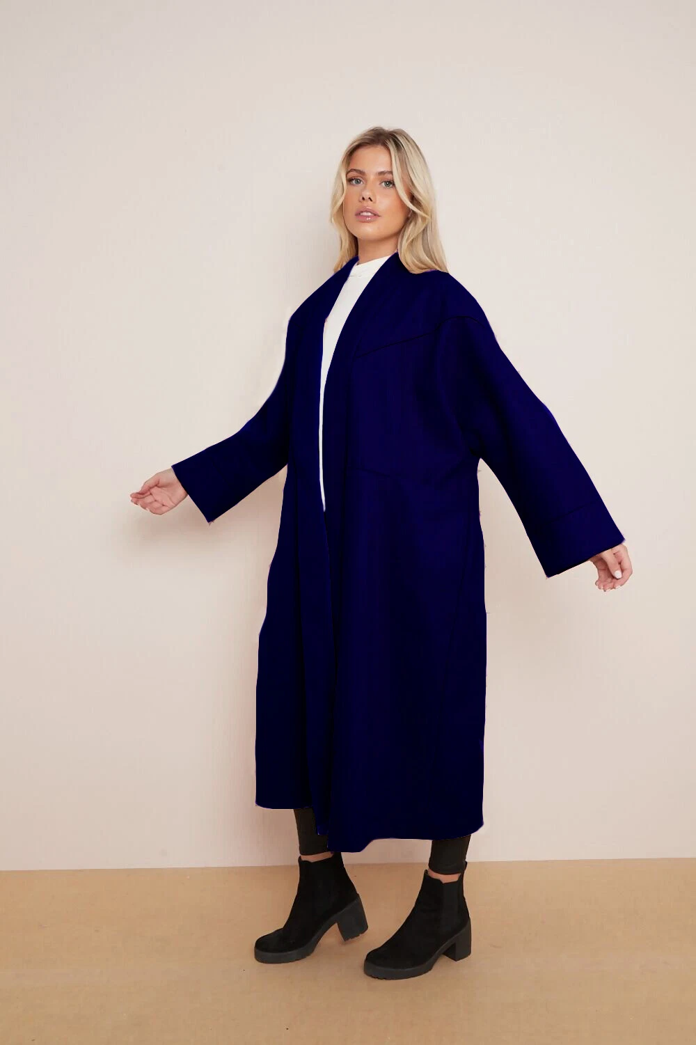 Solid Color Exposed Stitches Pocket Oversize Thermal Coat, Plain Winter Open-Front Outerwear Jacket,Basic Womenswear