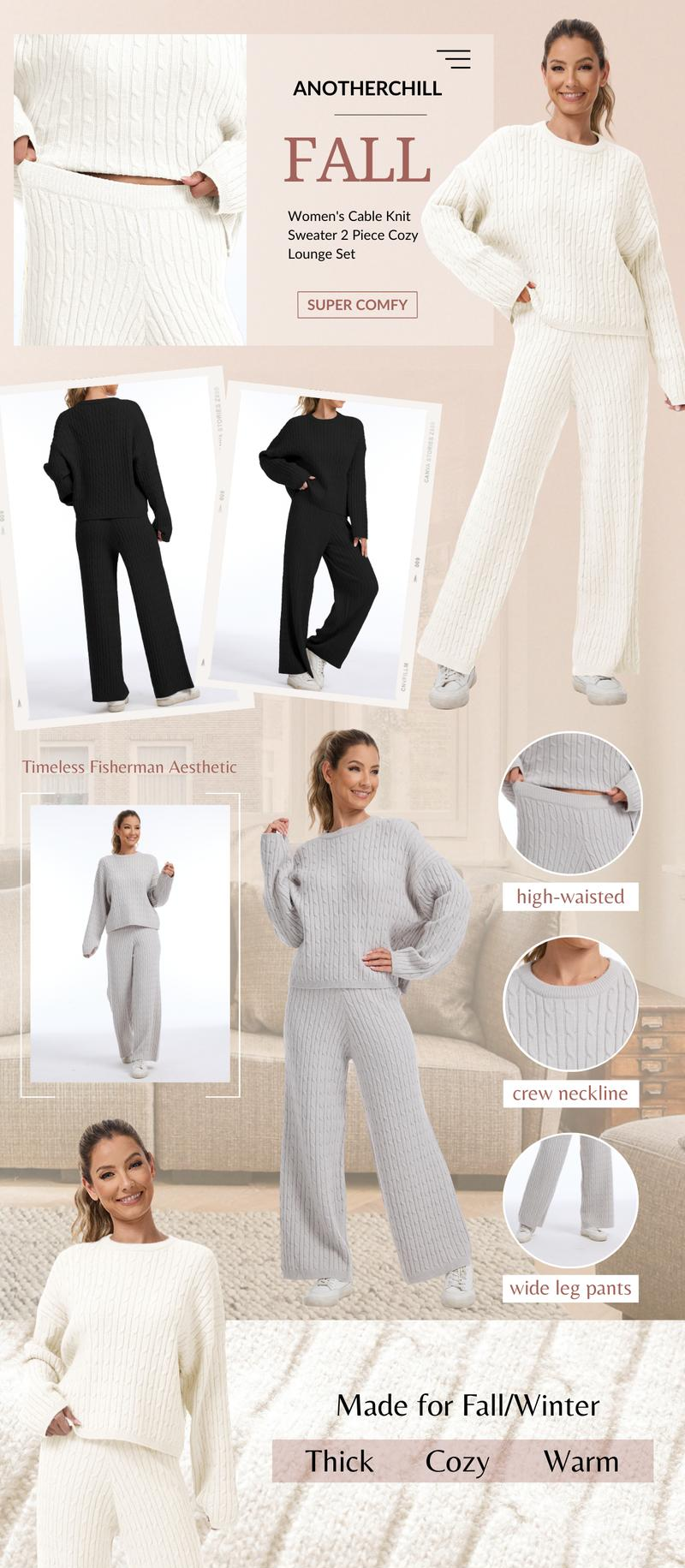 Cozy, stylish, and effortlessly flattering �� this cable knit lounge set is designed to keep you warm and comfortable through fall and winter. Crafted from a soft, breathable cable-knit blend, it offers a premium look without the heaviness of traditional wool.