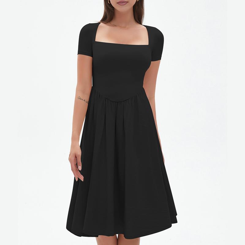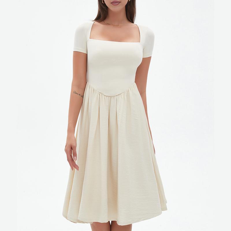 • Flattering Square Neckline �� Elegant square neckline with a fitted bodice enhances the feminine silhouette.