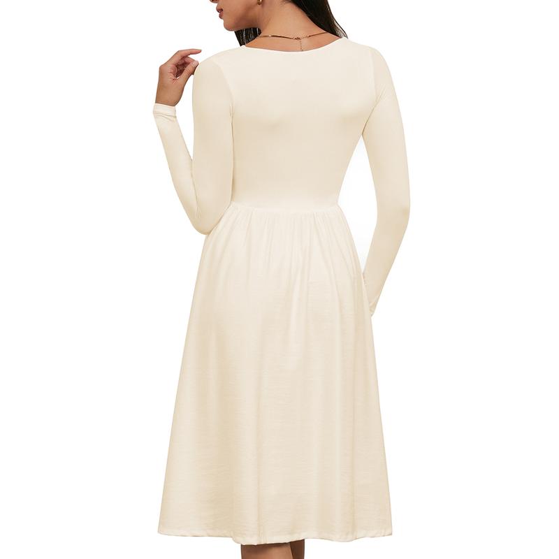 CHYRII Women��s 2025 Spring Square Neck Long Sleeve A-Line Midi Dress