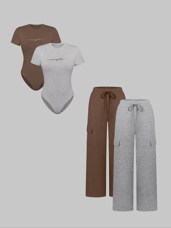 Effortlessly chic and endlessly comfortable, this two-piece outfit is designed to make every day feel easy and stylish. Featuring a soft short-sleeve bodysuit paired with flowy long pants, it��s your perfect all-season match �� cool enough for spring, cozy enough for fall. ������