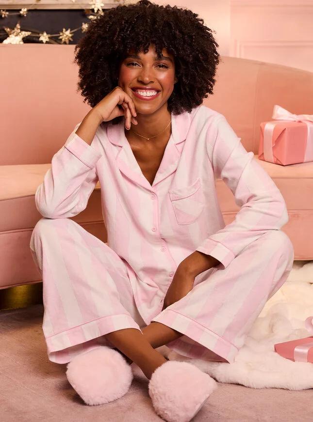 From bedtime to brunch, relax in cosy comfort with our soft cotton striped pyjamas in a bag, accented with a delicate shimmer! Packaged in a matching bag, they're a cozy indulgence for you or a heartfelt gift for someone you love.