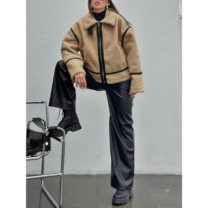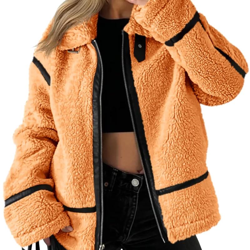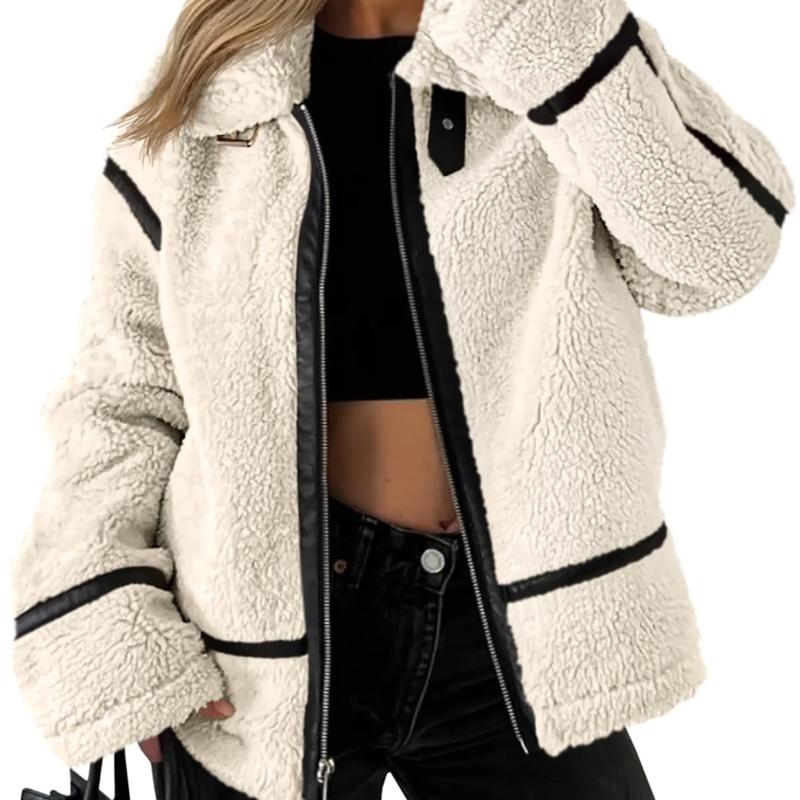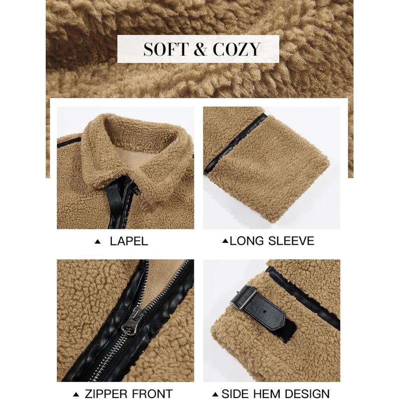 • Imily Bela Womens Winter Faux Fur Coats Fleece Zip up Sherpa Moto Jackets Trendy Warm Leather Patchwork Outerwear