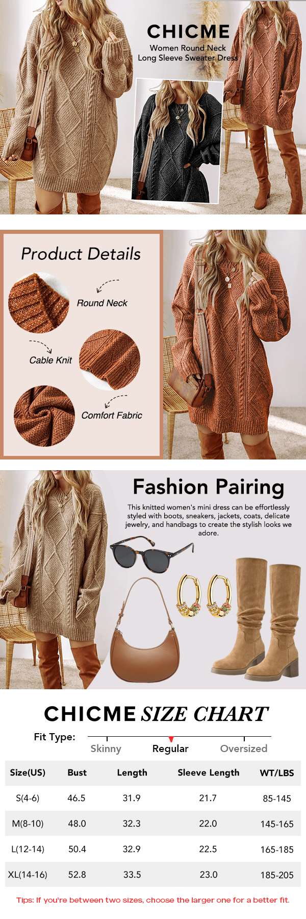 Styling & Pairing�Wear alone as a sweater dress with boots for an effortless chic vibe, or layer over leggings or tights for added warmth in cooler seasons.